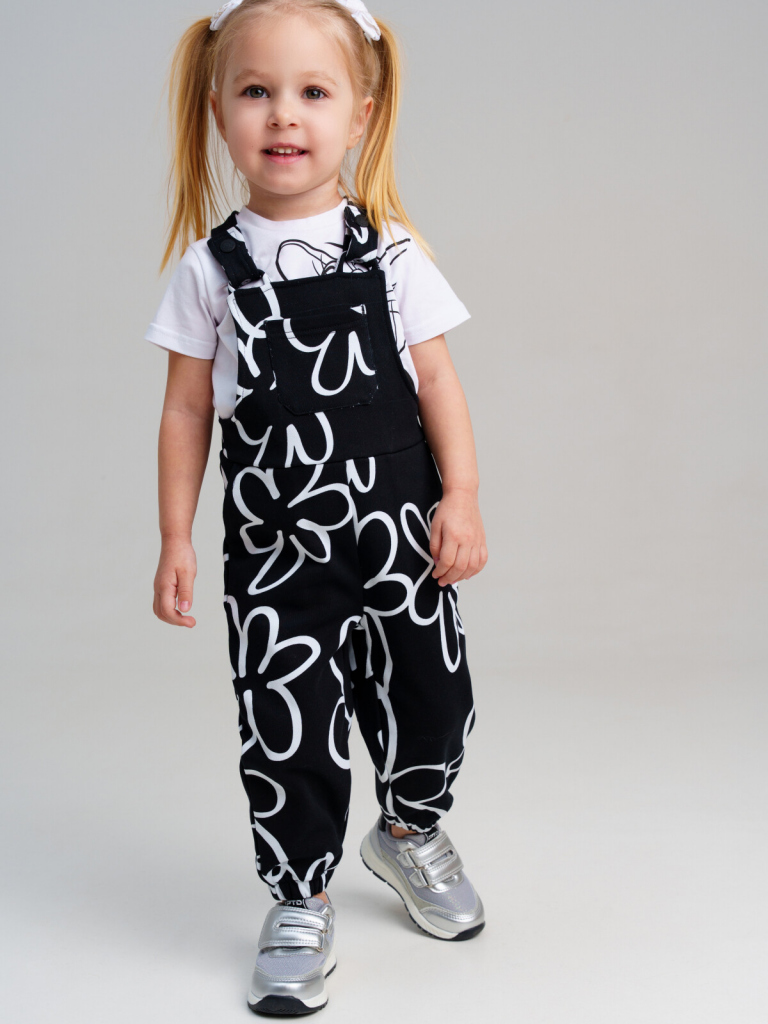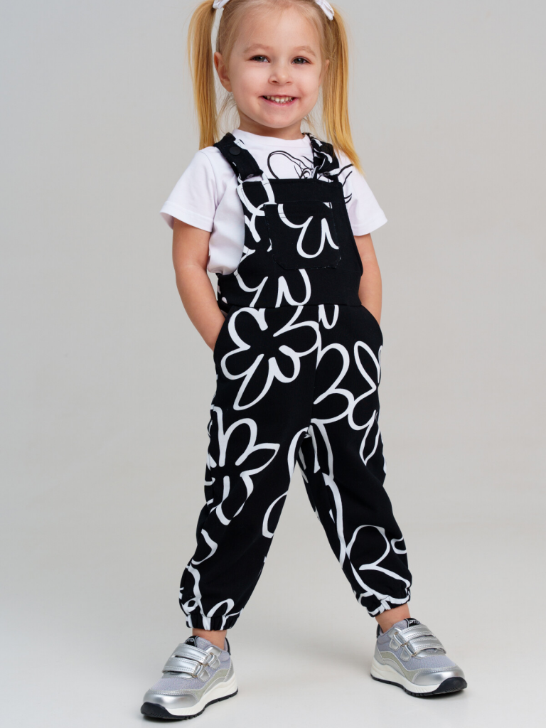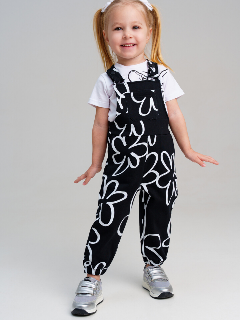 Полукомбинезон детский трикотажный для девочек черный,белый
