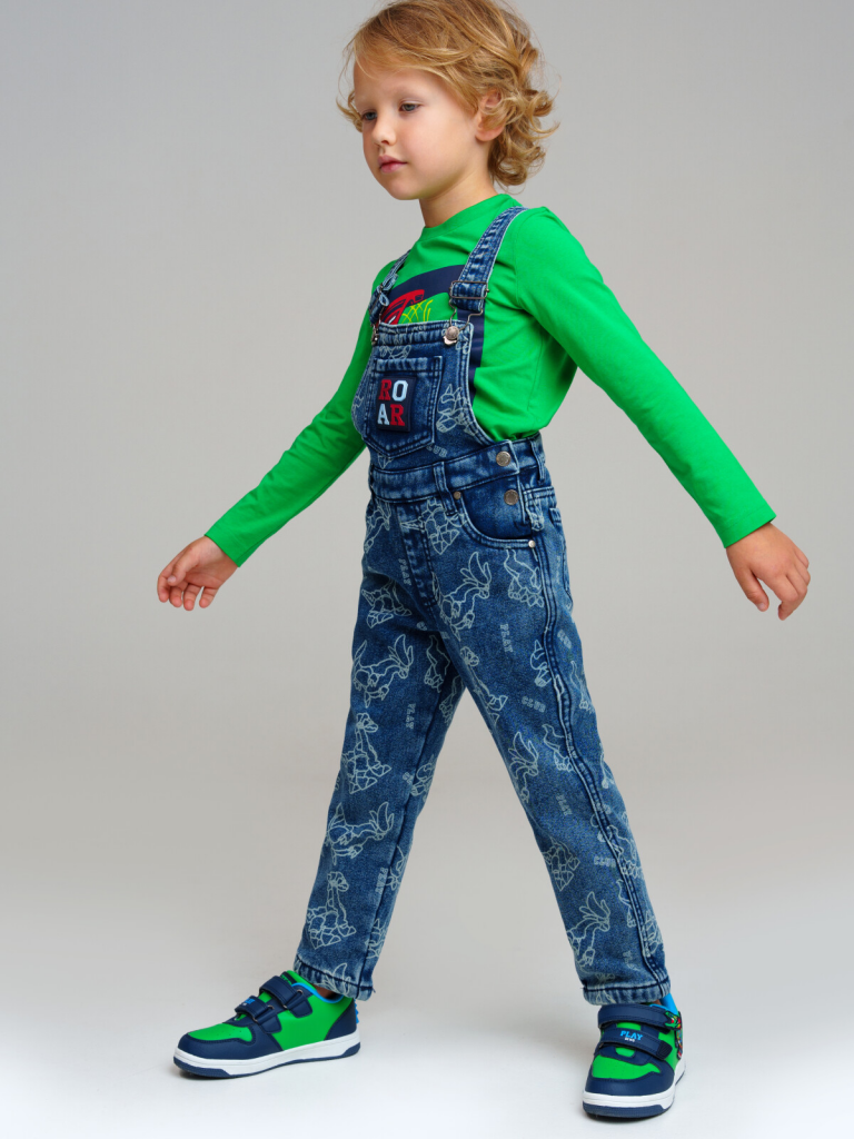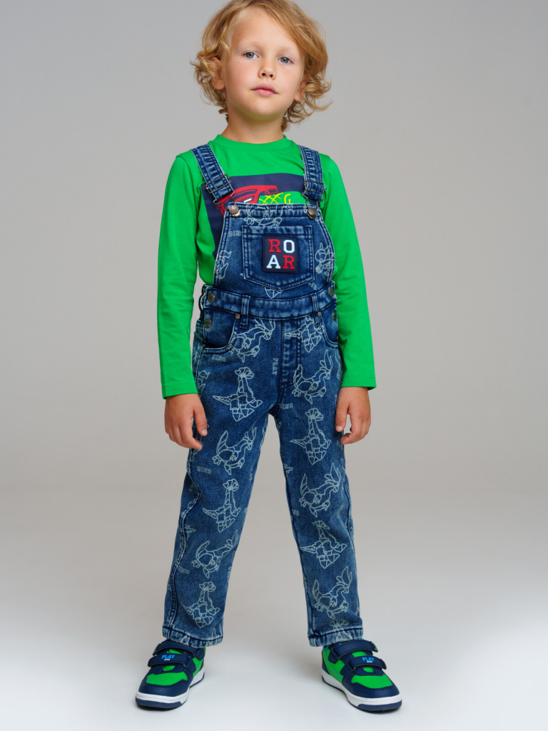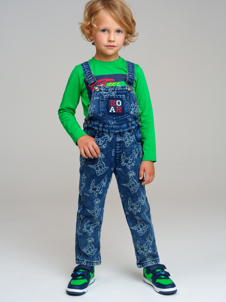 Джинсовый детский комбинезон comfort fit (свободная посадка) для мальчика. Модный джинсовый комбинезон на кнопках утепленный флисом. Внутренняя утяжка. Модель из капсульной коллекции DINO CLUB (ДИНО КЛАБ). Соберите полный образ в едином стиле! Комбинезон будет актуален для детского сада, в садик.