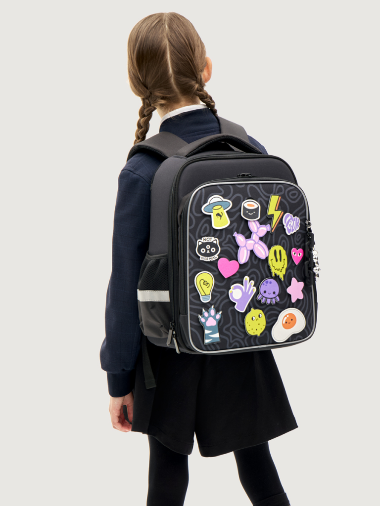 Анатомическая, продуманная, дышащая спинка позволяет равномерно распределить нагрузку на спину, уменьшая давление на позвоночник. Мягкие эластичные накладки из дышащего сетчатого материала на спинке и лямках обеспечивают правильную циркуляцию воздуха. S-образные обтекаемые лямки, регулируемые под рост петлями на концах, разработаны с учетом строения тела, в результате чего нагрузка на плечи распределяется равномерно . Ремень с застежкой удерживает лямки от спадания, снимает нагрузку с поясничного отдела. Эргономичная, мягкая ручка удобна для переноса в руке, петля-ручка для подвешивания ранца в раздевалке или на парте. Плотное дно на ножках делает рюкзак устойчивым и не промокает. Световозвращающие элементы со всех сторон ранца и кант на передней части обеспечивают безопасность ребенка на дороге в темное время суток. Подходит по размеру для ручной клади.