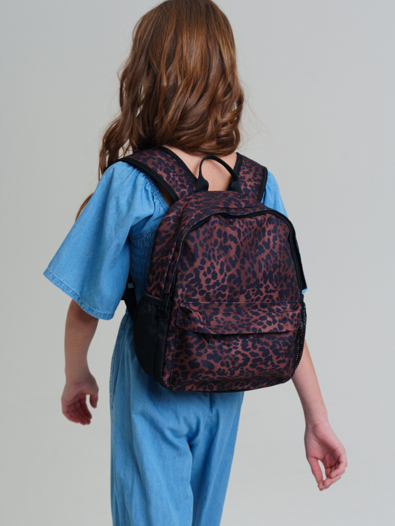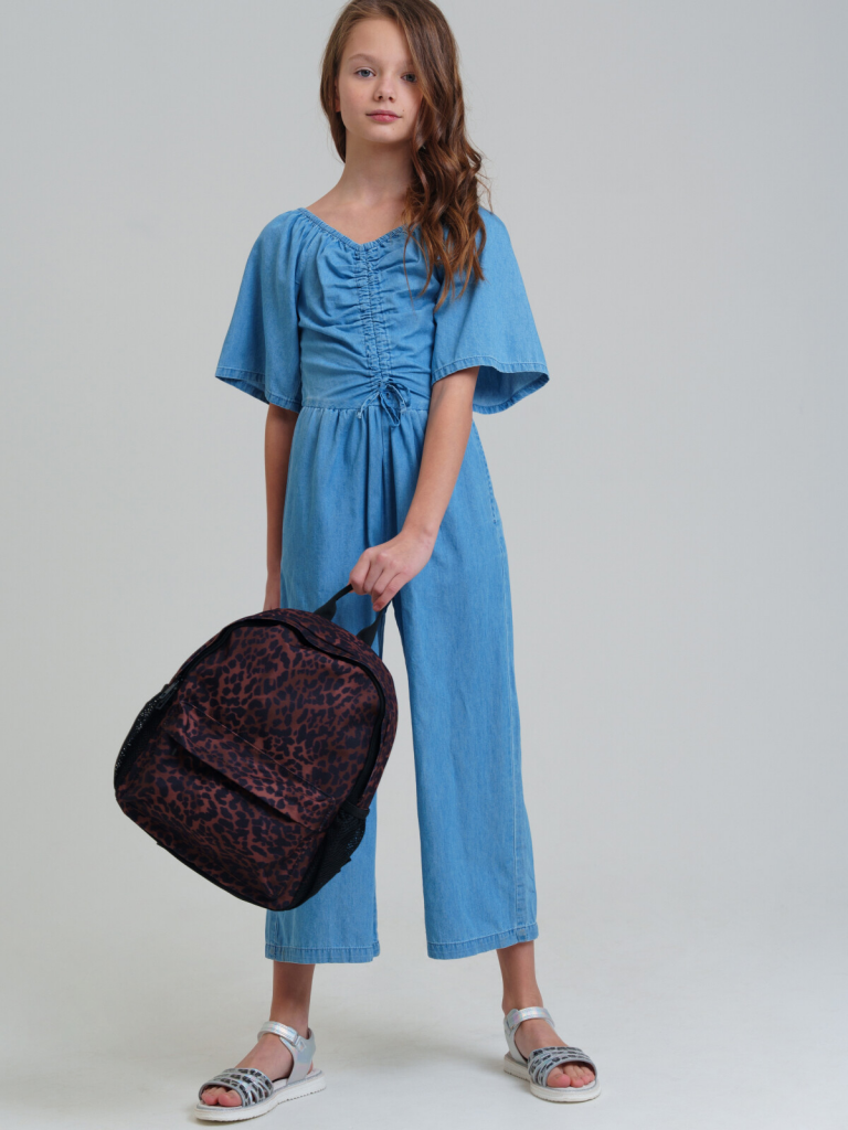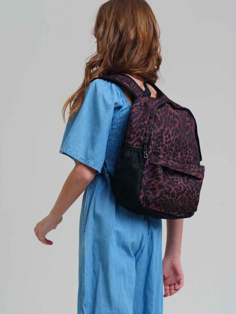 Стильный легкий рюкзак для девочки-подростка в леопардовой расцветке. Прямые широкие регулируемые лямки с мягкими вкладками и сетчатым покрытием для улучшения вентиляции. Основной отдел на молнии с защитным клапаном. Спереди большой удобный карман на молнии с защитным клапаном, 2 боковых кармана из сетки на резинке. Внутри: отдел для папок, карман на молнии, 2 кармана без замка для телефона. Усиленная спинка и дно. Светоотражающие элементы на плечевых ремнях. Параметры: высота - 34 см, ширина - 27 см, глубина - 10 см.