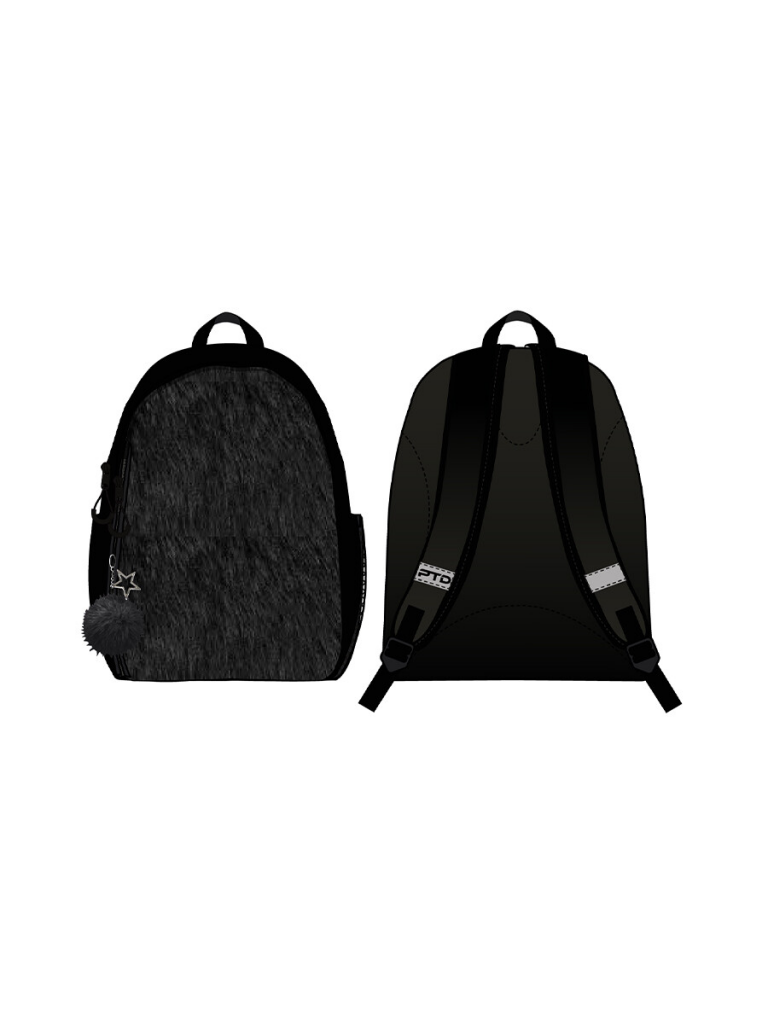 Легкий стильный меховой рюкзак с уплотненной вентилируемой спинкой для девочки подростка. Спереди рюкзак выполнены из мягкого искусственного меха, основная часть - из качественной и плотной водонепроницаемой ткани. Молния имеет защитный клапан от попадания воды. Рюкзак для школы имеет одно отделение с различными карманами внутри для систематизации школьных принадлежностей. Спереди имеется боковой кармана на молнии, который украшен трендовыми брелоками. По бокам также есть карманы. Широкие мягкие вентилируемые лямки регулируются по высоте. У рюкзака есть ручка для ношения в руке и для того, чтобы его можно было вешать на вешалку. Ранец имеет светоотражающие детали на лямках. Рюкзак в школу можно дополнить пеналом в том же дизайне. Размер рюкзака: 30*40*15 см. Вес рюкзака: 435 гр