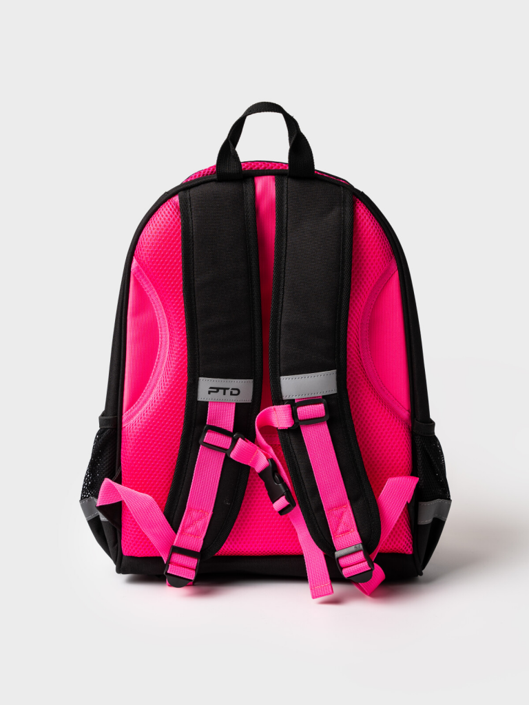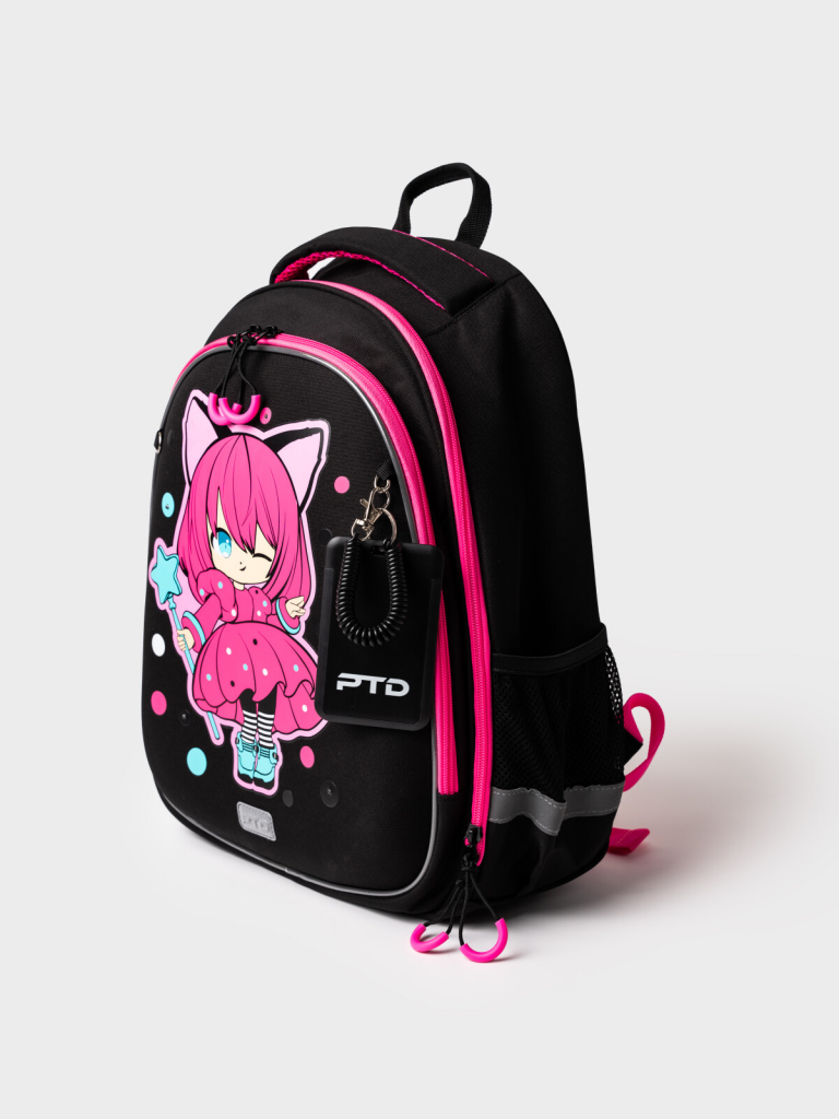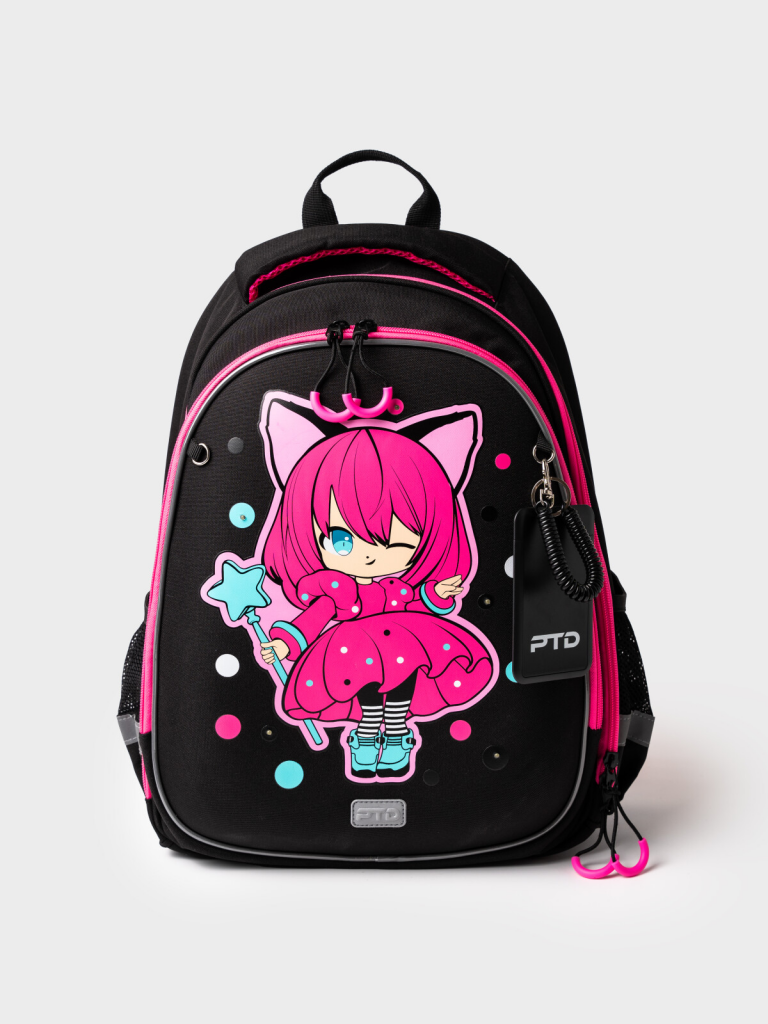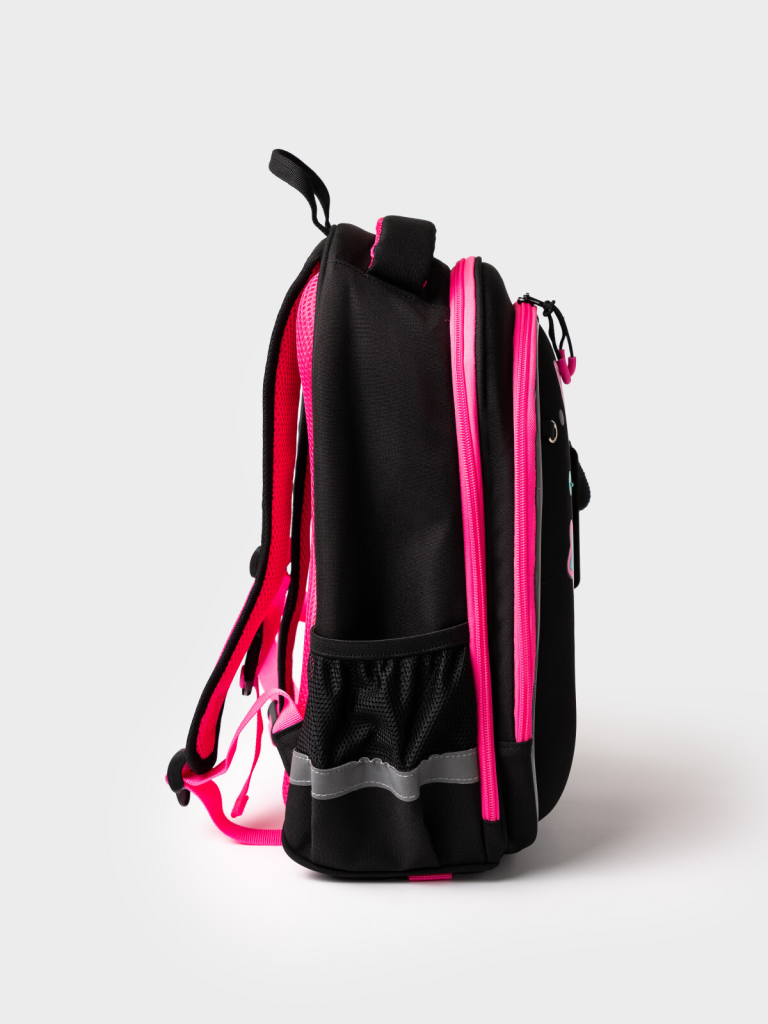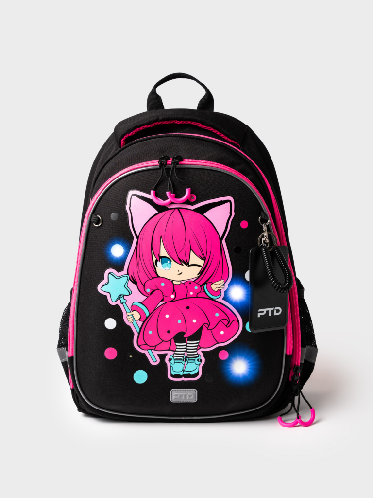 Уникальность дизайна ранца заключается в использовании светодиодных лампочек на передней панели. Формоустойчивый рюкзак с ортопедической спинкой для девочки школьницы. Конструкция ортопедической вентилируемой спинки обеспечивает максимальный комфорт и позволяет снизить нагрузку на спину школьников и дошкольников. Широкие мягкие вентилируемые лямки регулируются по высоте, что делает рюкзак идеальным как для первоклассника, так и для детей из средней школы. Спереди лямки можно закрепить на застежку, чтобы они не спадали. Дно имеет уплотнение. Снизу дна имеются резиновые ножки, чтобы низ рюкзака не пачкался. Рюкзак имеет два основных отделения на молнии. Внутри имеется несколько отделений и кармашков для систематизации школьных принадлежностей. По бокам есть карманы. У рюкзака есть две ручки: одна - мягкая вентилируемая ручка для ношения в руках, вторая маленькая - для того, чтобы рюкзак можно было вешать на вешалку. Модель выполнена из водонепроницаемой ткани. Рюкзак имеет светоотражающие детали на лямках, по бокам, на переднем отделении, чтобы ребенка было хорошо видно в темноте со всех сторон. В подарок идет пластиковый чехол для пропуска на растягивающейся пружине. Пружина дает возможность спокойно приложить пропуск к турникету не снимая рюкзак. Рюкзак в школу можно дополнить мешком для обуви и пеналом в том же дизайне. Размер рюкзака: 30*39*19 см. Вес рюкзака: 830 гр