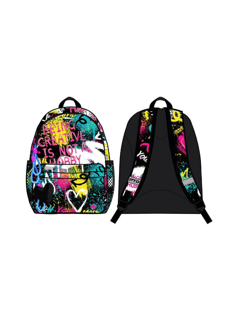 Легкий яркий рюкзак с уплотненной вентилируемой спинкой для девочки подростка. Модель выполнена из качественной и плотной водонепроницаемой ткани оксфорд. Молния имеет защитный клапан от попадания воды. Рюкзак для школы имеет одно отделение с различными карманами внутри для систематизации школьных принадлежностей. Спереди большой кармана на молнии. По бокам также есть карманы. Широкие мягкие вентилируемые лямки регулируются по высоте. У рюкзака есть ручка для ношения в руке и для того, чтобы его можно было вешать на вешалку. Ранец имеет светоотражающие детали на лямках. Молнии декорированы стильными навесами. Рюкзак в школу можно дополнить мешком для обуви и пеналом в том же дизайне. Размер рюкзака: 30*40*15 см. Вес рюкзака: 560 гр
