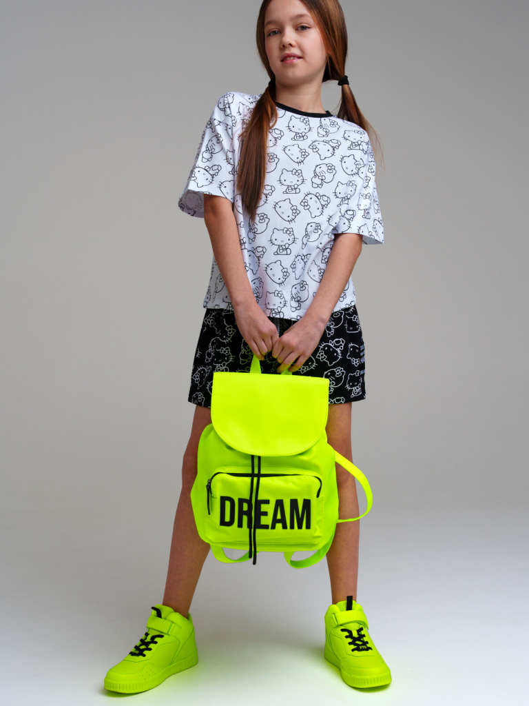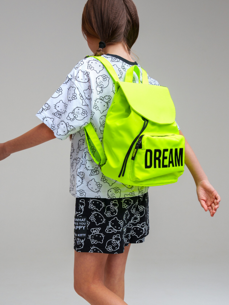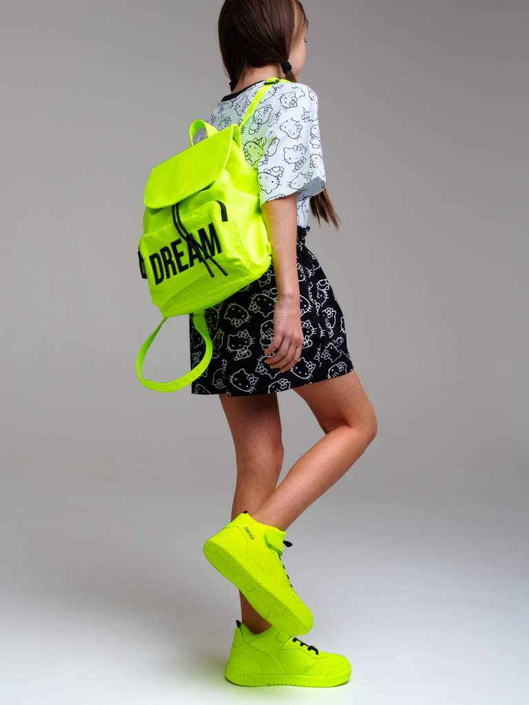 Рюкзак текстильный для девочек светло-зеленый неоновый