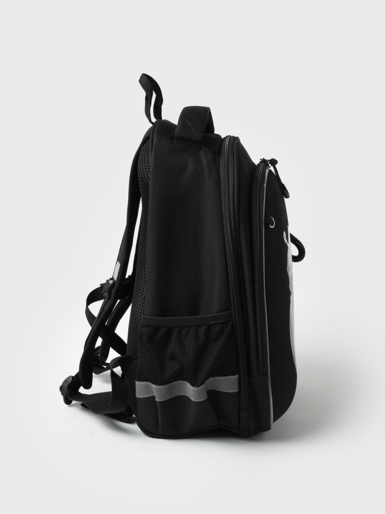 Формоустойчивый рюкзак с ортопедической спинкой для мальчика школьника. Конструкция ортопедической вентилируемой спинки обеспечивает максимальный комфорт и позволяет снизить нагрузку на спину школьников и дошкольников. Широкие мягкие вентилируемые лямки регулируются по высоте, что делает рюкзак идеальным как для первоклассника, так и для детей из средней школы. Спереди лямки можно закрепить на застежку, чтобы они не спадали. Дно имеет уплотнение. Снизу дна имеются резиновые ножки, чтобы низ рюкзака не пачкался. Рюкзак имеет два основных отделения на молнии. Внутри имеется несколько отделений и кармашков для систематизации школьных принадлежностей. По бокам есть карманы. У рюкзака есть две ручки: одна - мягкая вентилируемая ручка для ношения в руках, вторая маленькая - для того, чтобы рюкзак можно было вешать на вешалку. Модель выполнена из водонепроницаемой ткани. Ранец имеет светоотражающие детали на лямках, по бокам, на переднем отделении, чтобы ребенка было хорошо видно в темноте со всех сторон. В подарок идет пластиковый чехол для пропуска на растягивающейся пружине. Пружина дает возможность спокойно приложить пропуск к турникету не снимая рюкзак. Рюкзак в школу можно дополнить мешком для обуви и пеналом в том же дизайне. Размер рюкзака: 30*39*19 см. Вес рюкзака: 830 гр