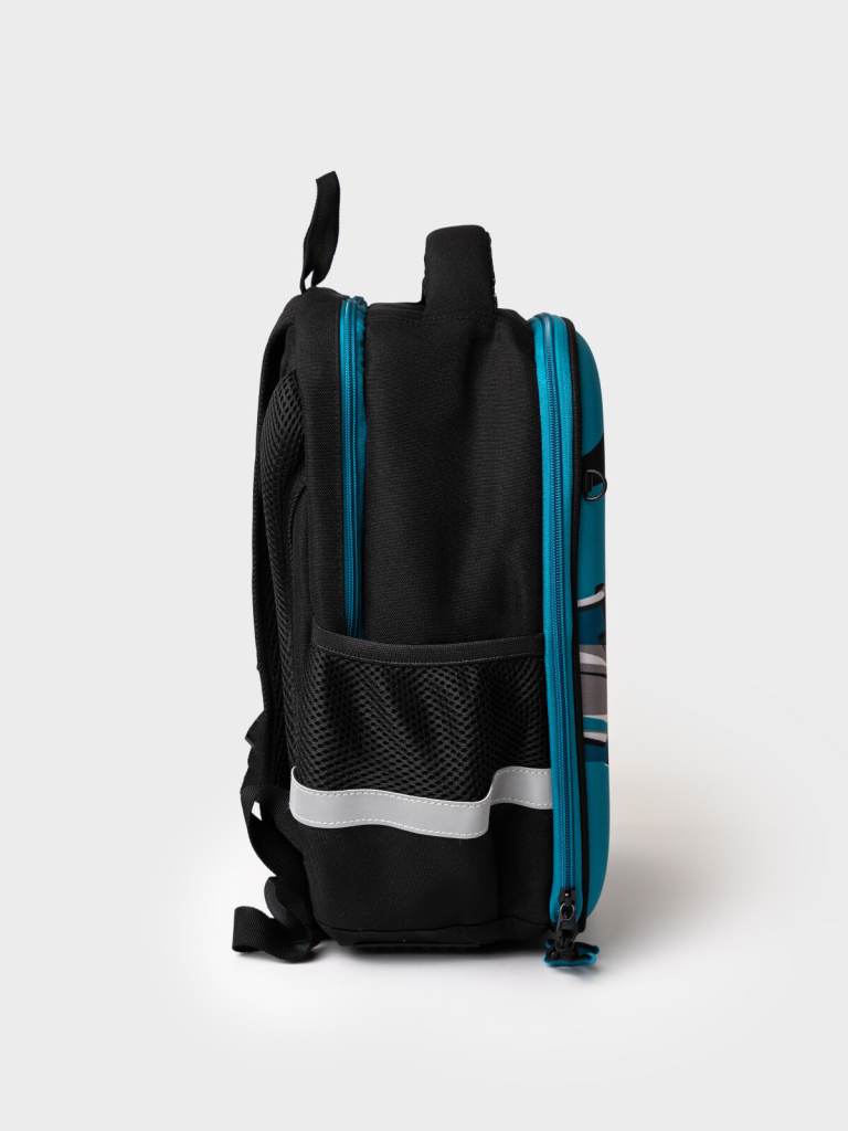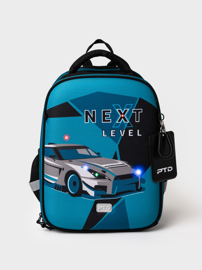 Уникальность дизайна ранца заключается в использовании светодиодных лампочек на передней панели. Формоустойчивый рюкзак с ортопедической спинкой для мальчика школьника. Конструкция ортопедической вентилируемой спинки обеспечивает максимальный комфорт и позволяет снизить нагрузку на спину школьников и дошкольников. Широкие мягкие вентилируемые лямки регулируются по высоте, что делает рюкзак идеальным как для первоклассника, так и для детей из средней школы. Спереди лямки можно закрепить на застежку, чтобы они не спадали. Дно имеет уплотнение. Снизу дна имеются резиновые ножки, чтобы низ рюкзака не пачкался. Рюкзак имеет два основных отделения на молнии. Внутри имеется несколько отделений и кармашков для систематизации школьных принадлежностей. По бокам есть карманы. У рюкзака есть две ручки: одна - мягкая вентилируемая ручка для ношения в руках, вторая маленькая - для того, чтобы рюкзак можно было вешать на вешалку. Модель выполнена из водонепроницаемой ткани. Ранец имеет светоотражающие детали на лямках, по бокам, на переднем отделении, чтобы ребенка было хорошо видно в темноте со всех сторон. В подарок идет пластиковый чехол для пропуска на растягивающейся пружине. Пружина дает возможность спокойно приложить пропуск к турникету не снимая рюкзак. Рюкзак в школу можно дополнить мешком для обуви и пеналом в том же дизайне. Размер рюкзака: 26*37*19 см. Вес рюкзака: 950 гр