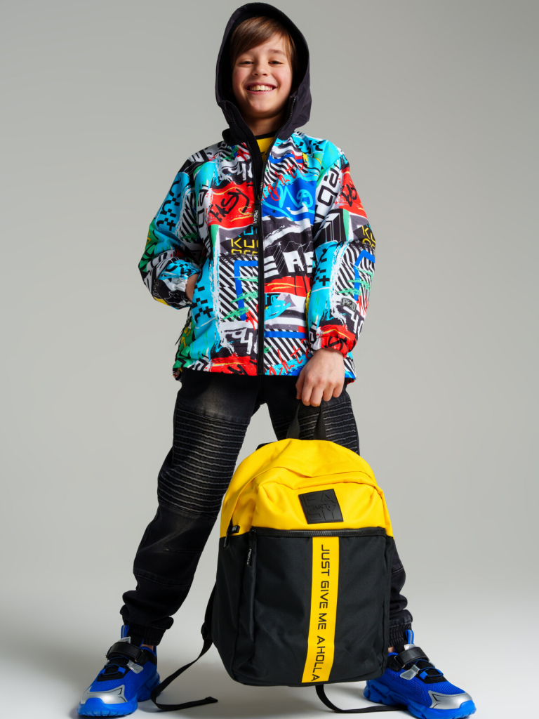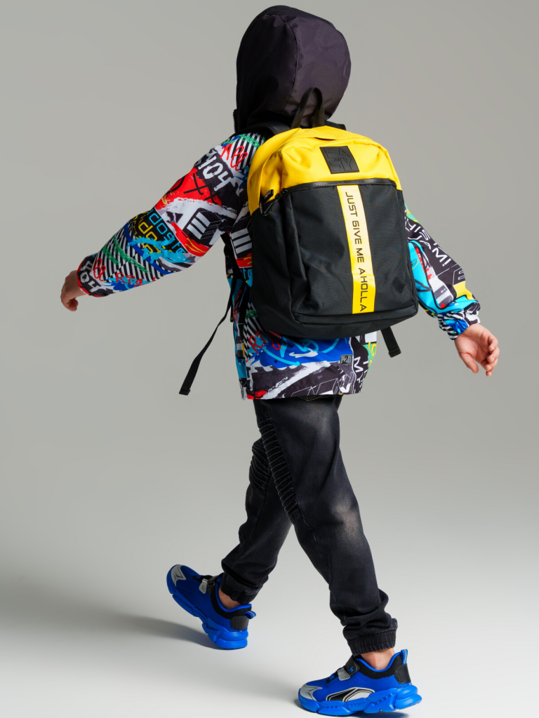 Рюкзак текстильный для мальчиков черный,жёлтый