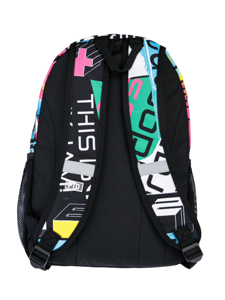 Рюкзак текстильный. 40*30*15 см. Широкие регулируемые мягкие лямки. 1 основное отделение и 1 карман на молнии. 2 боковых кармана без молнии . Внутри - отделение для ноутбука, 1 карман на молнии, 2 кармана без молнии, карабин для ключей. Усиленная спинка. Светоотражающие элементы - логотип и светоотражающие полоски на лямках. Усиленное дно.