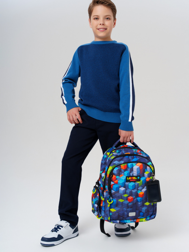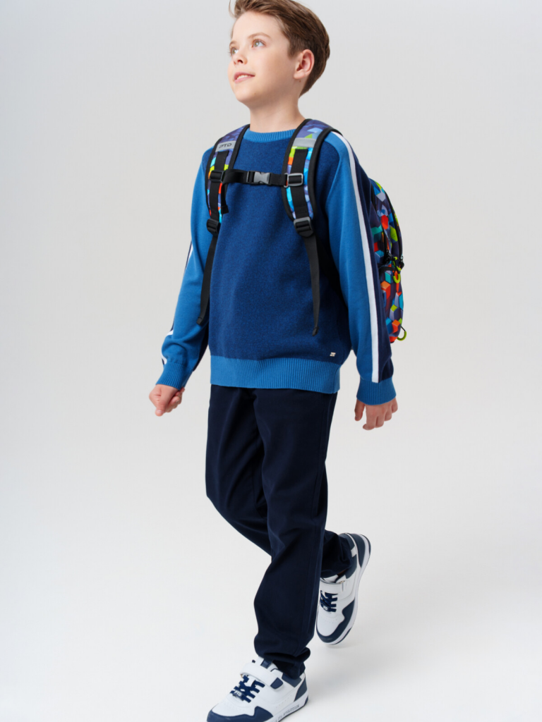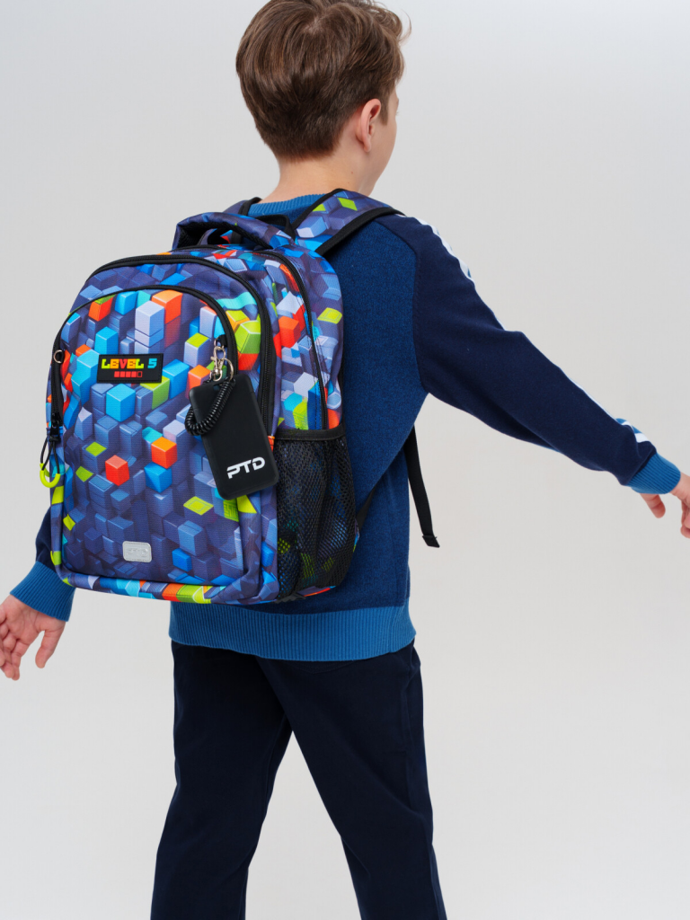 Трехсекционный рюкзак с ортопедической спинкой для мальчика школьника. Конструкция ортопедической вентилируемой спинки обеспечивает максимальный комфорт и позволяет снизить нагрузку на спину школьников и дошкольников. Широкие мягкие вентилируемые лямки регулируются по высоте, что делает рюкзак идеальным как для первоклассника, так и для детей из средней школы. Спереди лямки можно закрепить на застежку, чтобы они не спадали. Дно имеет уплотнительный вкладыш, который при необходимости можно не использовать. Снизу дна имеются резиновые ножки, чтобы низ рюкзака не пачкался. Рюкзак имеет два основных отделения на молнии один большой карман спереди. Внутри имеется несколько отделений и кармашков для систематизации школьных принадлежностей. По бокам есть карманы: один - сетчатый, второй - на молнии. У рюкзака есть две ручки: одна - мягкая вентилируемая ручка для ношения в руках, вторая маленькая - для того, чтобы рюкзак можно было вешать на вешалку. Модель выполнена из водонепроницаемой ткани. Ранец имеет светоотражающие детали на лямках, по бокам, на переднем отделении, чтобы ребенка было хорошо видно в темноте со всех сторон. В подарок идет пластиковый чехол для пропуска на растягивающейся пружине. Пружина дает возможность спокойно приложить пропуск к турникету не снимая рюкзак. Рюкзак в школу можно дополнить мешком для обуви и пеналом в том же дизайне. Размер рюкзака: 29*38*19 см. Вес рюкзака: 630 гр