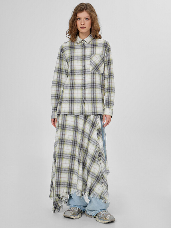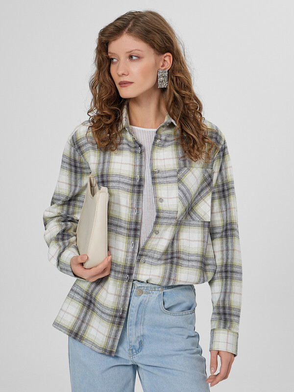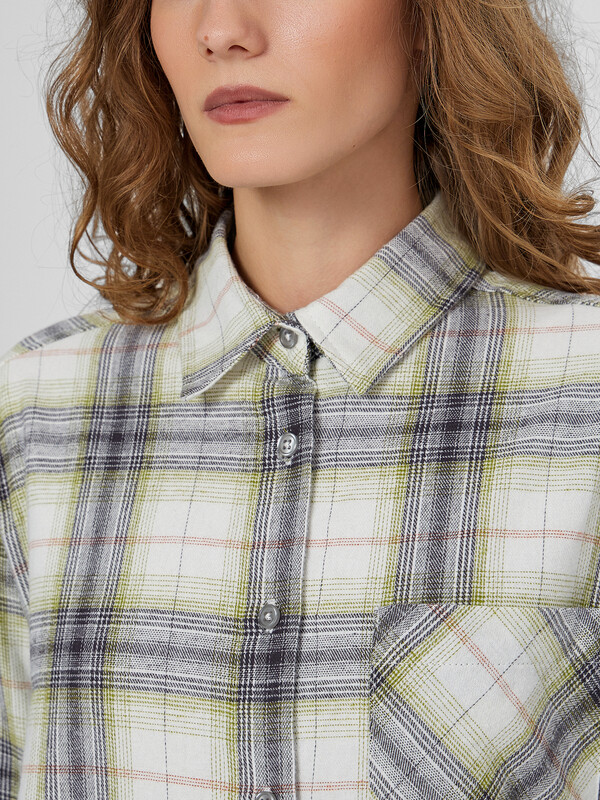 Натуральный материал состоит из хлопка, что гарантирует комфорт и воздухообмен в течение всего дня. Актуальный дизайн позволяет носить рубашку как в повседневных ситуациях, так и в динамичном городском ритме. Эта модель легко сочетается с джинсами, брюками современных фасонов и юбками, позволяя создавать стильные комбинации. Графичная клетка делает рубашку самостоятельным акцентом в луке, который органично дополнит как расслабленные, так и собранные образы.
