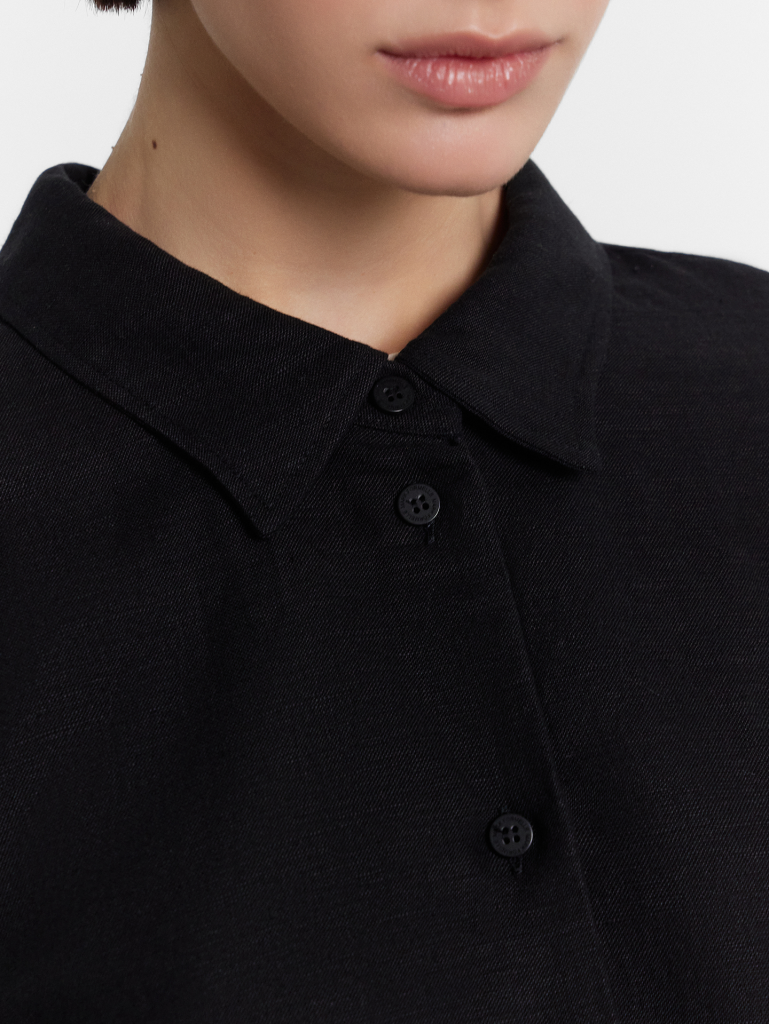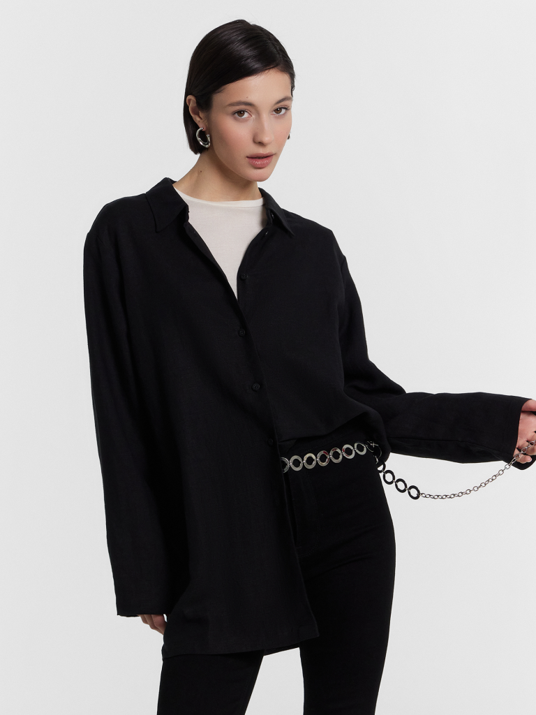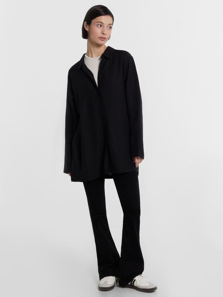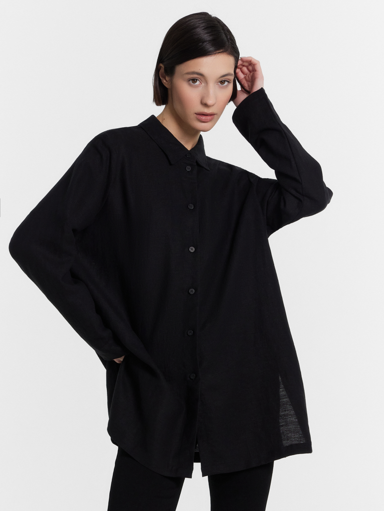 Женская рубашка свободного силуэта станет стильным и удобным элементом вашего гардероба. Изготовленная из натурального сочетания льна и вискозы, она отражает все преимущества этих материалов. Лён обеспечивает отличную воздухопроницаемость и комфорт в жаркую погоду, а вискоза добавляет мягкость и приятные ощущения при носке. Модель имеет классический воротник и длинные рукава с манжетами, что придает ей элегантный и утонченный вид. Спущенная линия плеча и углубленная пройма создают современный и расслабленный силуэт, который обеспечивает свободу движений и комфорт. Застежка на пуговицах добавляет удобство и позволяет легко надевать и снимать рубашку. Этот универсальный элемент гардероба идеально подходит как для повседневного ношения, так и для создания более формальных образов.