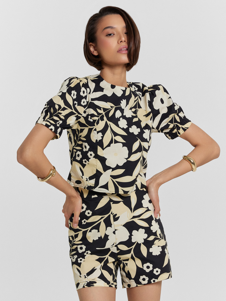 Женская укороченная блузка — стильный и элегантный вариант для летних образов! Приталенный силуэт подчеркивает фигуру, создавая женственный и утонченный стиль, а короткие рукава с эластичными манжетами добавляют изысканные детали, обеспечивая комфорт и идеальную посадку. Застежка на пуговицу на спинке придает модели оригинальность и удобство, позволяя легко надевать и снимать блузку. Изделие выполнено из хлопка с добавлением спандекса, благодаря чему ткань остается мягкой, дышащей и слегка эластичной, обеспечивая свободу движений. Дополните эту модель подходящими шортами из этой же коллекции бренда, чтобы создать гармоничный летний комплект, который будет выглядеть стильно и свежо!