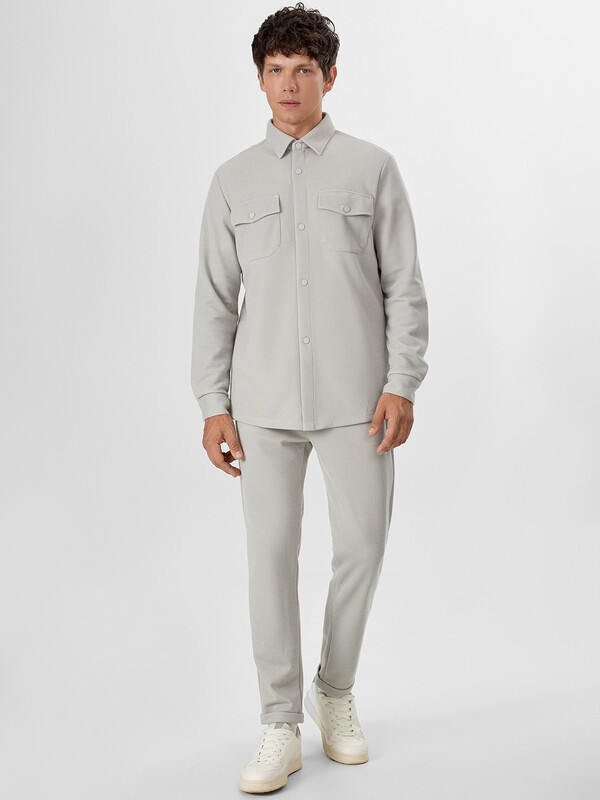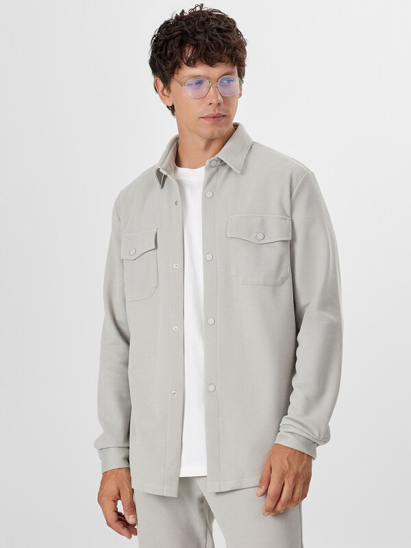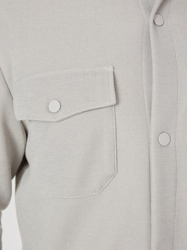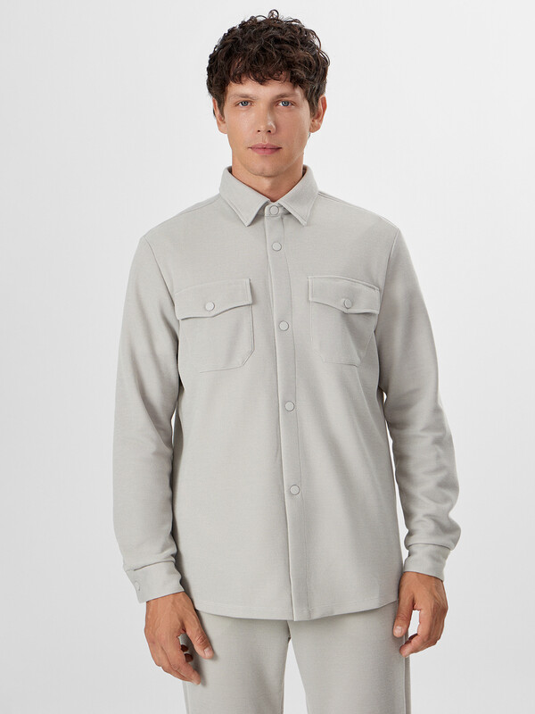 Центральная застежка на кнопки. На деталях переда накладные карманы с клапанами, с