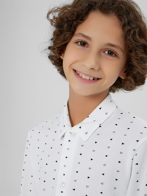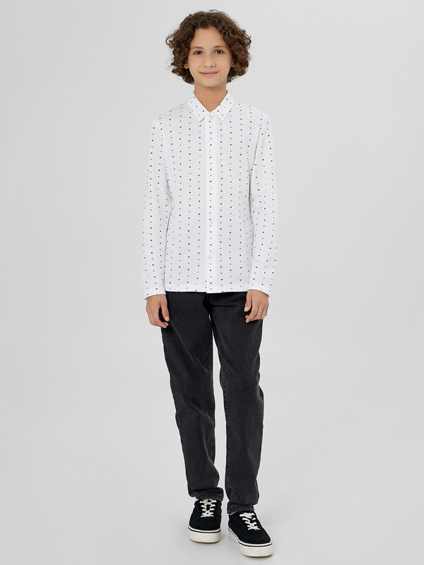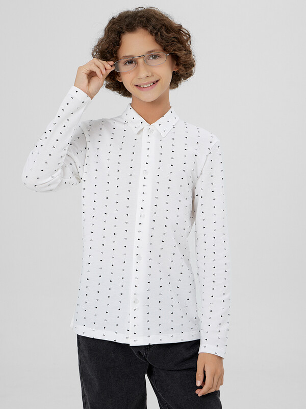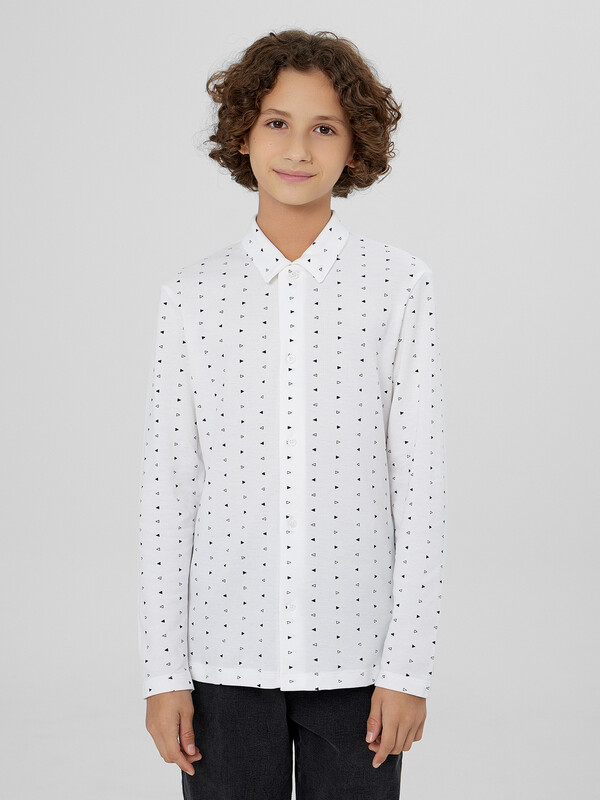 Сорочка прямого силуэта с воротником. Рукава длинные, втачные. По переду обработана застежка на пуговицы и петли. Низ изделия и рукавов обработаны на 2-х игольной плоскошовной машине швом в подгибку.