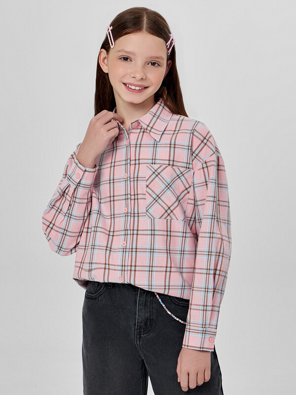 Рубашка голубая и розовая клетка