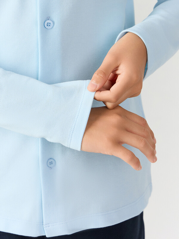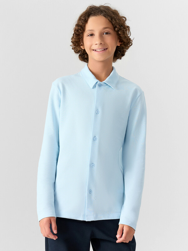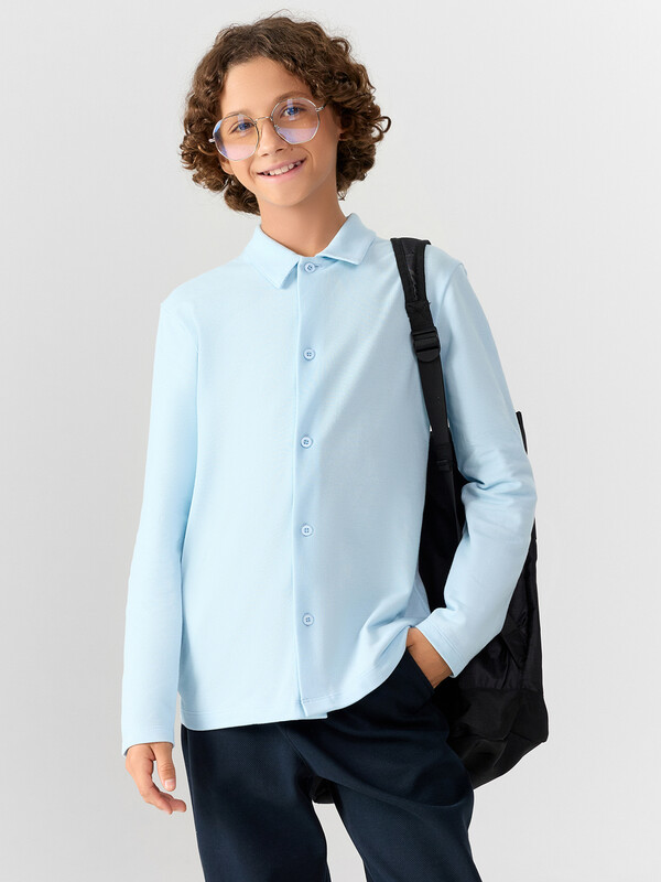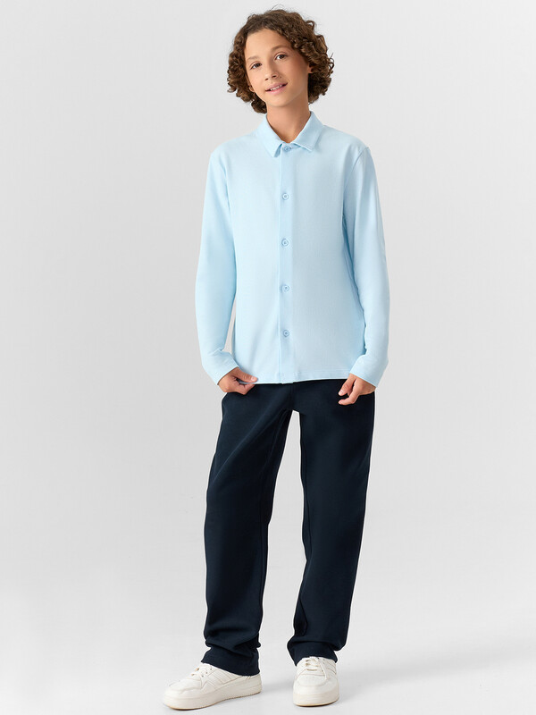 Сорочка прямого силуэта с воротником. Рукава длинные, втачные. По переду обработана застежка на пуговицы и петли. Низ изделия и рукавов обработаны на 2-х игольной плоскошовной машине швом в подгибку.