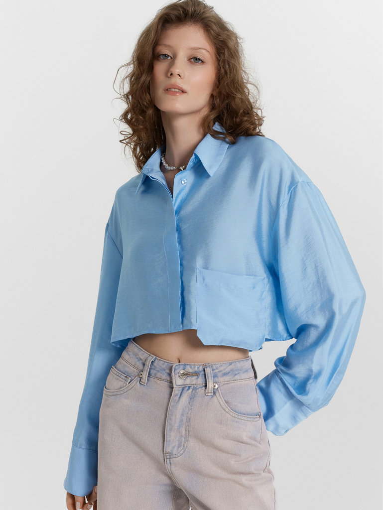 Эта укороченная женская рубашка станет ярким элементом вашего гардероба, идеально подходящим для создания стильных и разнообразных образов! Модель свободного кроя обеспечивает комфорт и актуальный расслабленный стиль. Застежка на пуговицах придает рубашке классическую элегантность, а отложной воротник подчеркивает утонченность дизайна. Накладной карман добавляет функциональности и завершенности образу. Изделие выполнено из сочетания модала и нейлона, благодаря чему рубашка отличается мягкостью, прочностью и приятной к телу текстурой. Этот материал хорошо сохраняет форму и устойчив к износу, что делает изделие долговечным и удобным для носки. Эта рубашка идеально сочетается с джинсами, брюками или юбками, помогая создавать элегантные и повседневные образы. Универсальный выбор для современных и уверенных в себе женщин!