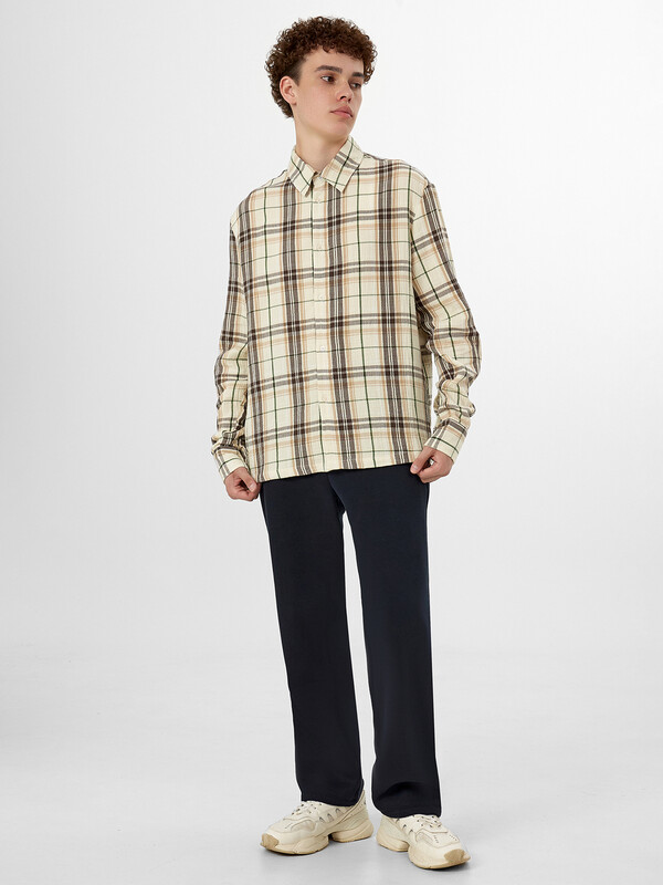 Мужская рубашка в клетку бежевого оттенка – универсальная модель, которая станет основой стильного гардероба. Эта бежевая мужская рубашка из хлопка с длинным рукавом сочетает в себе классическую клетку и современный крой, создавая идеальный баланс между повседневностью и элегантностью. Прямой силуэт обеспечивает комфортную посадку, а натуральный хлопок гарантирует приятные тактильные ощущения и отличную воздухопроницаемость.