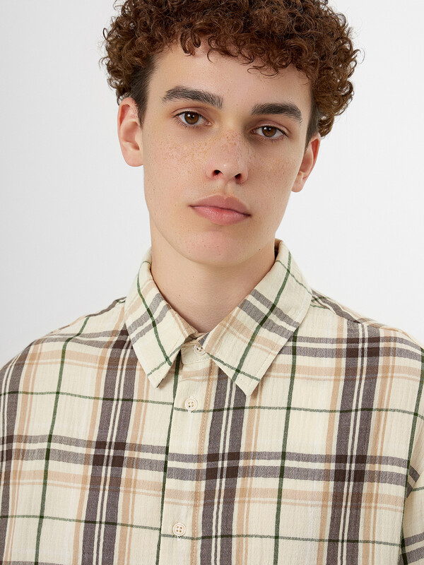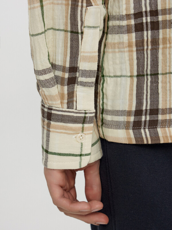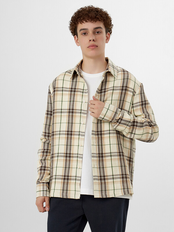 Отложной воротник и застежка на пуговицах позволяют легко варьировать степень формальности образа. Рубашка мужская с длинным рукавом дополнена манжетами с пуговицами – эта деталь добавляет образу аккуратности и завершенности. Универсальный бежевый цвет в сочетании с клеткой делает модель идеальной для создания как деловых, так и casual-комплектов.