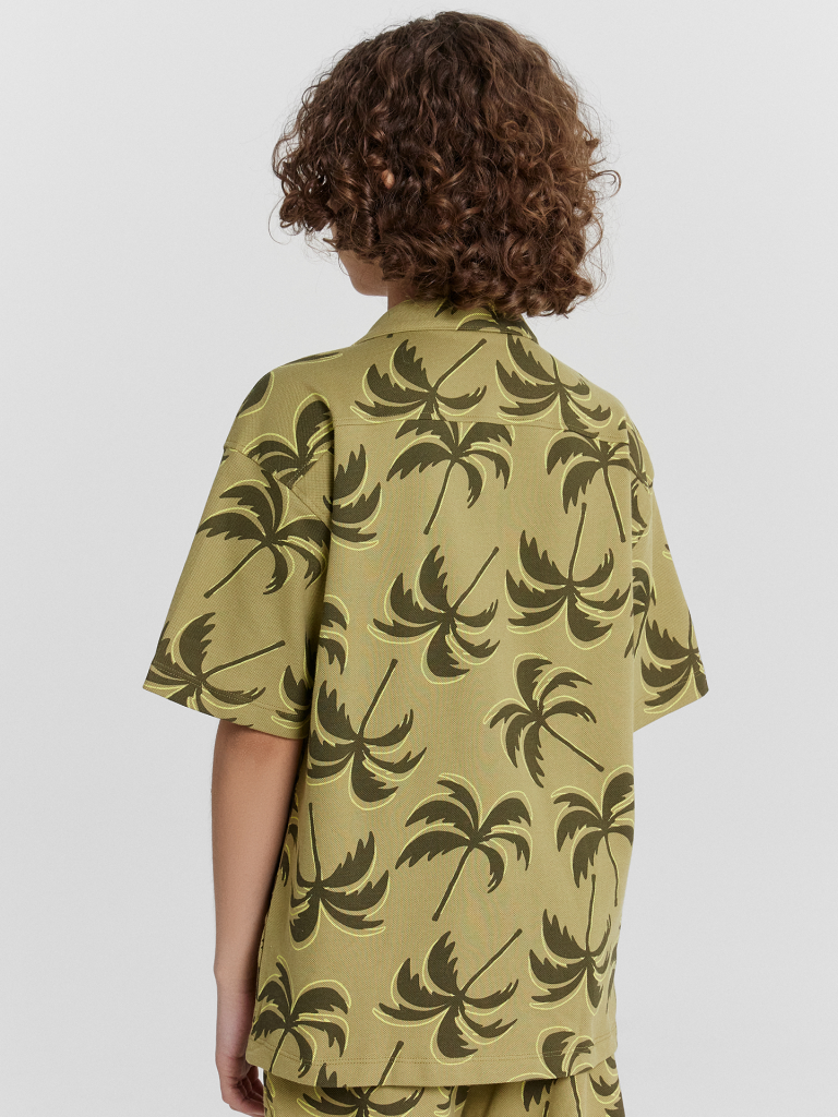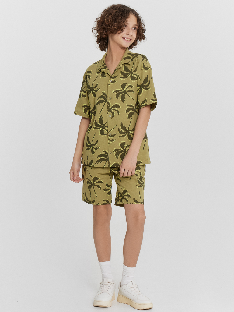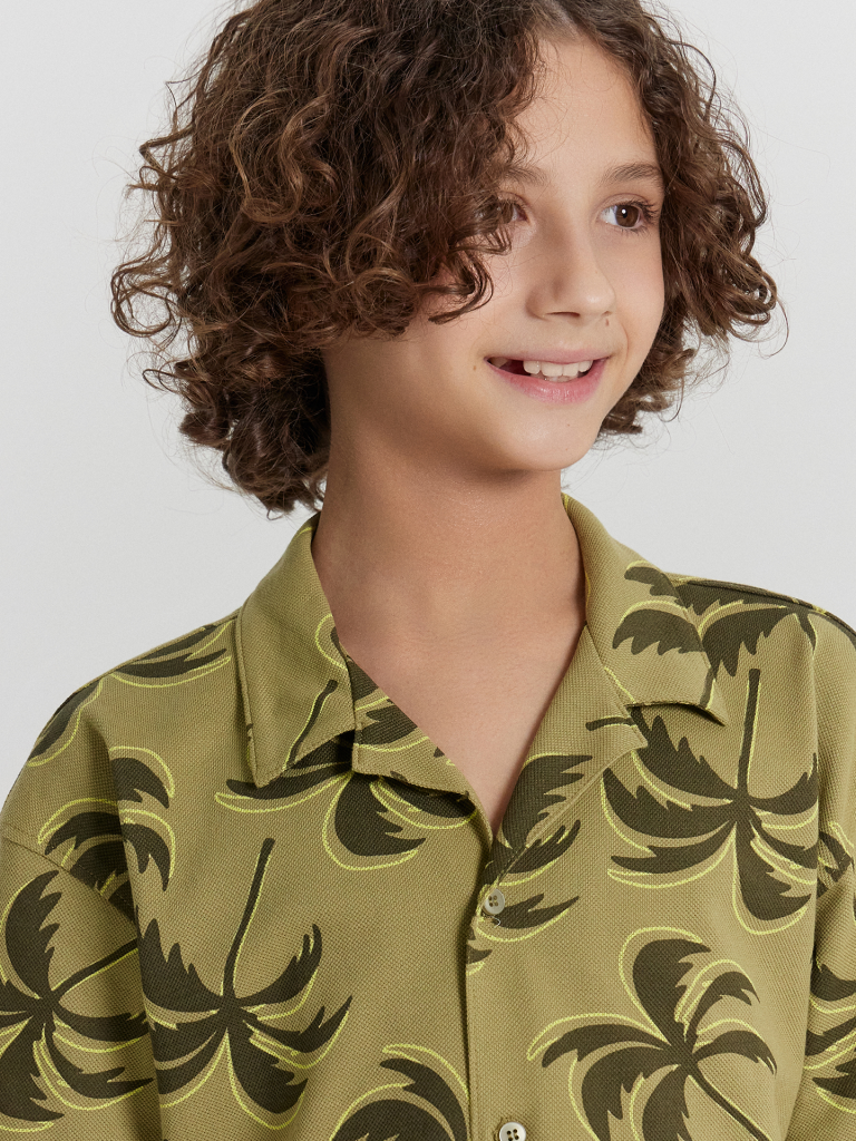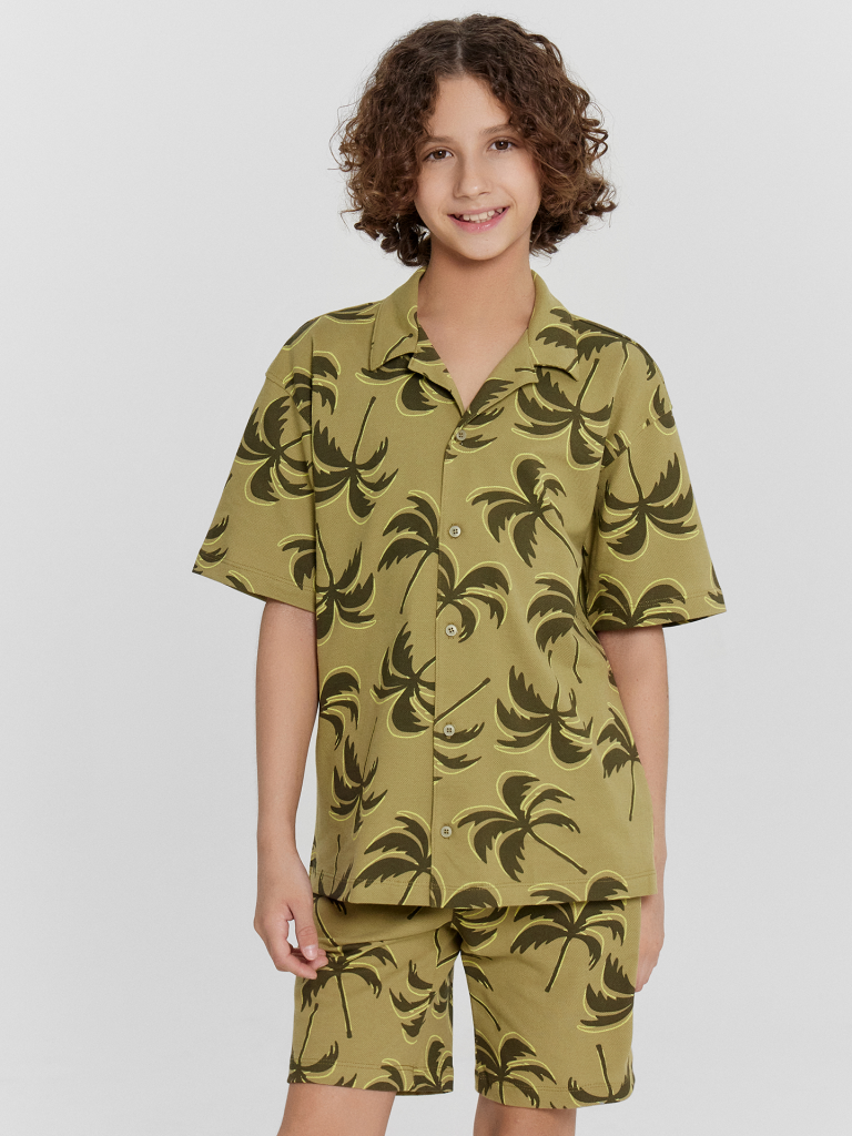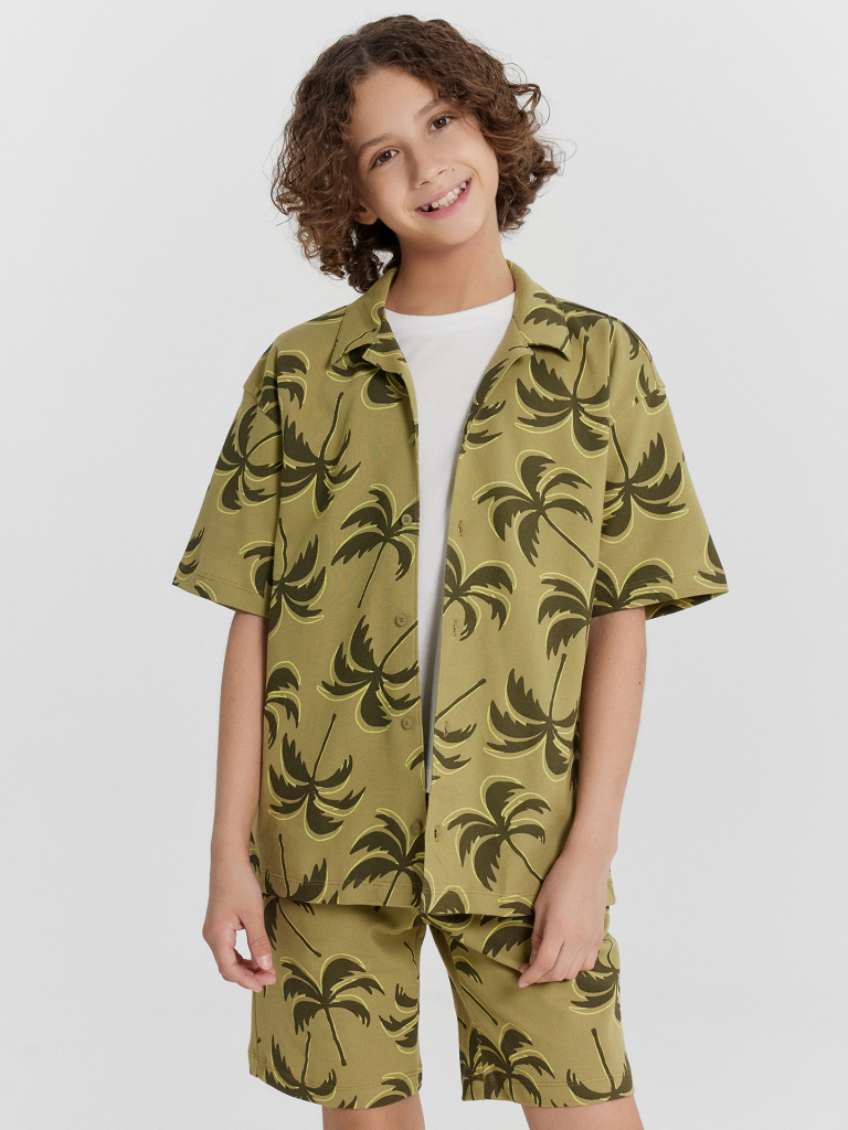 Сорочка верхняя для мальчиков прямого силуэта с воротником. По переду обработана застежка на пуговицы и петли. Диаметр пуговицы 1 см, 4 прокола. Рукава короткие, втачные, слегка спущены. На спине кокетка. Нижние срезы изделия и рукавов обработаны швом в подгибку.