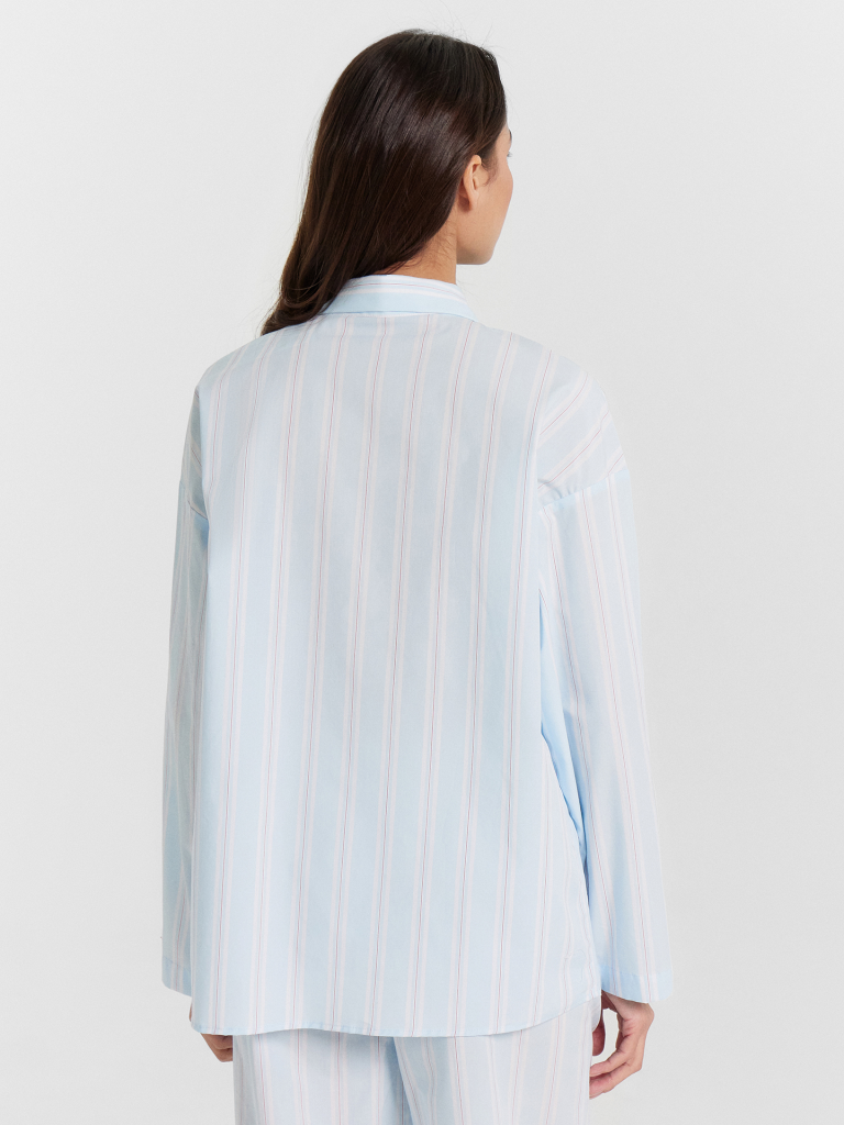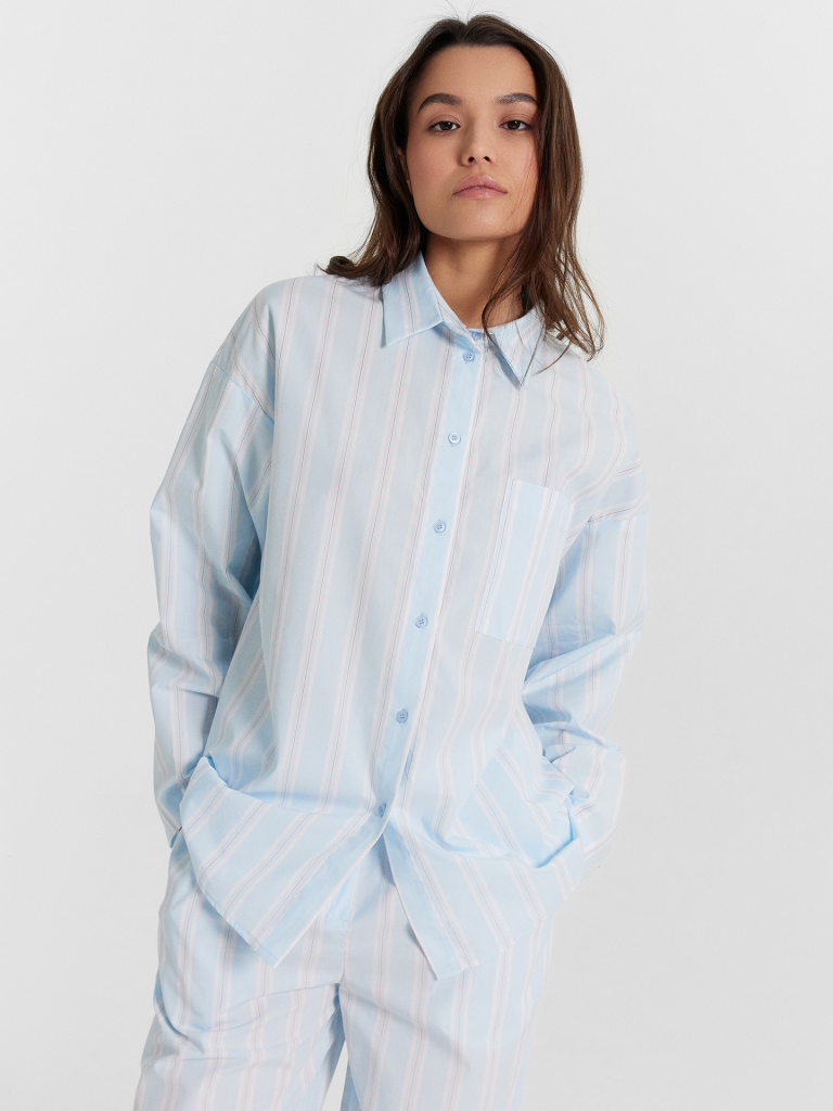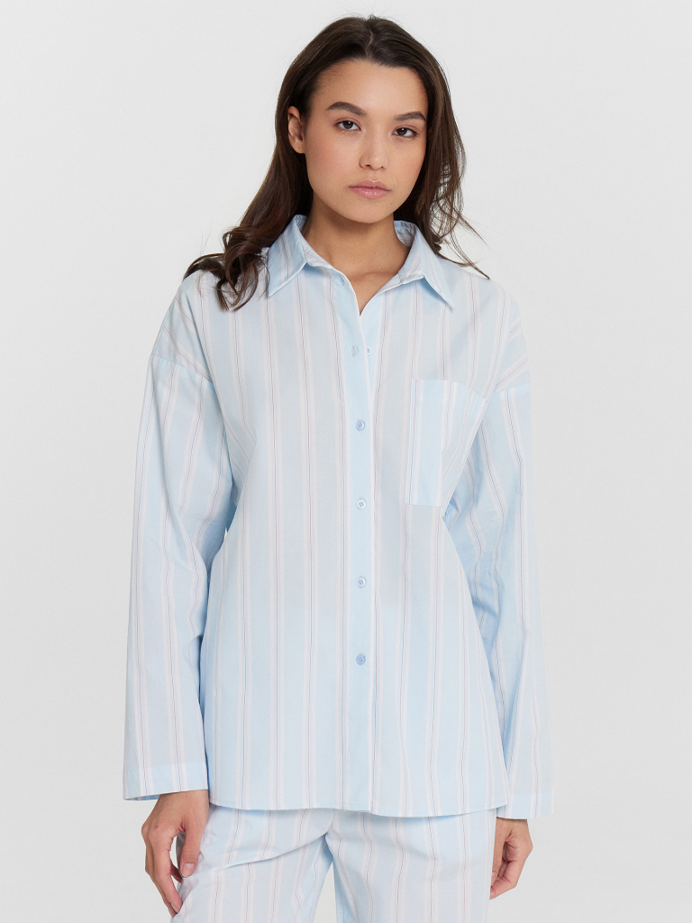 Домашняя рубашка свободного силуэта, выполненная из высококачественного 100% хлопка. Невероятно мягкий и приятный на ощупь материал подарит вам непревзойденный комфорт на протяжении всего дня, даря ощущение легкости и свежести. Благодаря продуманному крою, изделие безупречно сидит на фигуре, создавая элегантный и уютный образ. Длинные рукава завершают гармоничный вид, добавляя дополнительный комфорт и стиль. Лаконичный дизайн с классическим воротником и застежкой на пуговицы делает эту модель универсальной. Вы можете легко дополнить её брюками в тон из этой же домашней коллекции для создания стильного и завершенного образа. Рекомендуем эту рубашку для тех, кто ценит комфорт, качество и стиль в своем домашнем гардеробе.
