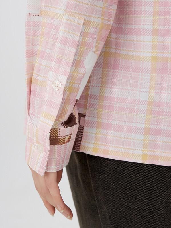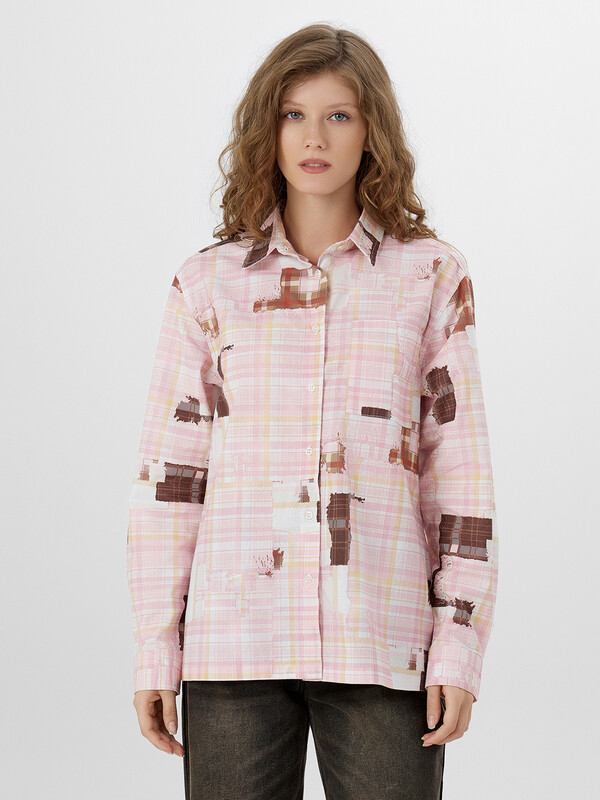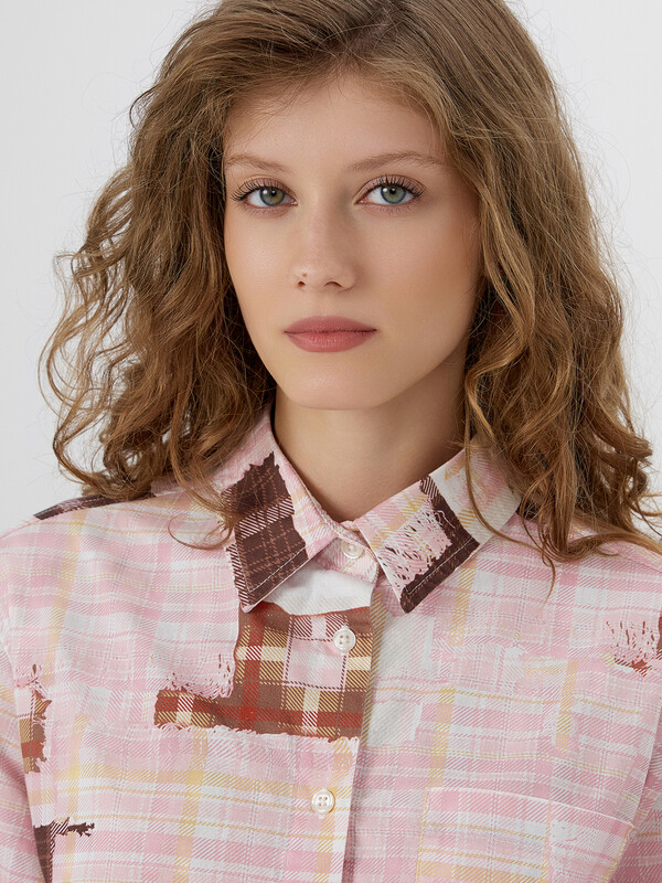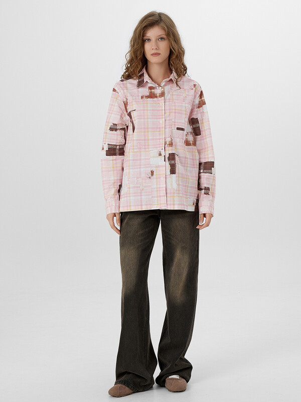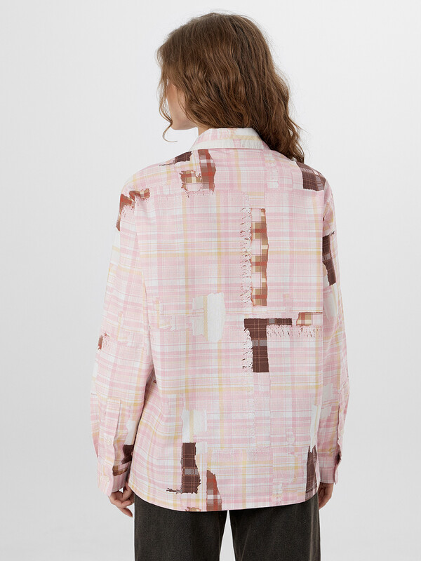 Рубашка розовая клетка из патчей