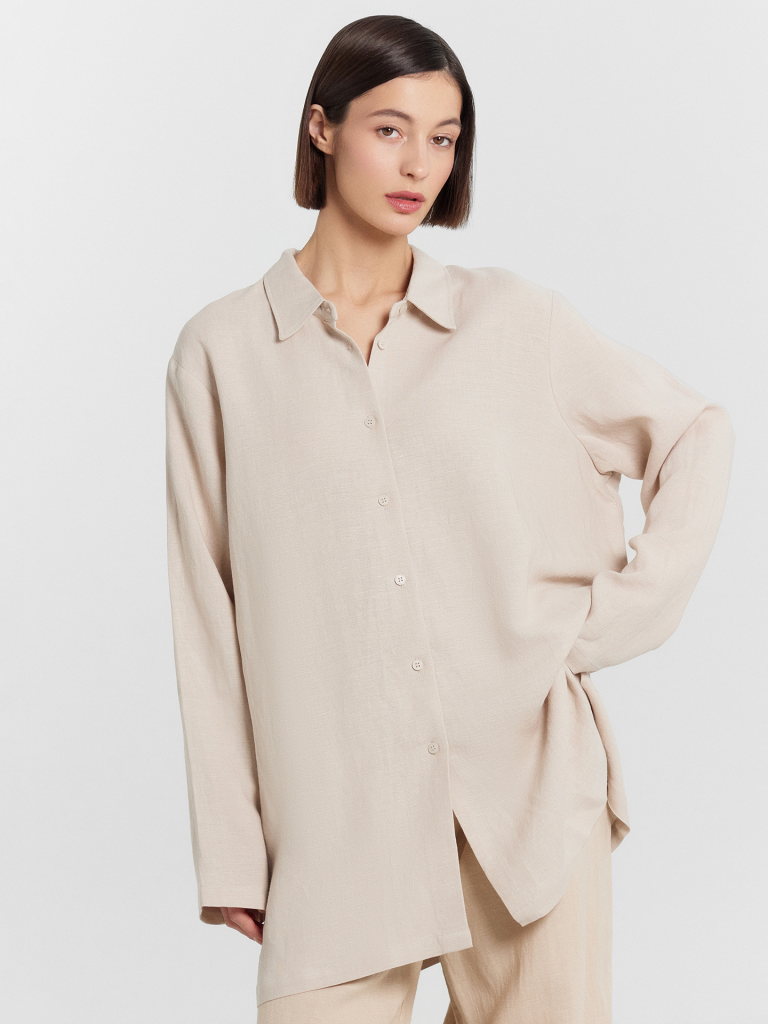 Женская рубашка свободного силуэта станет стильным и удобным элементом вашего гардероба. Изготовленная из натурального сочетания льна и вискозы, она отражает все преимущества этих материалов. Лён обеспечивает отличную воздухопроницаемость и комфорт в жаркую погоду, а вискоза добавляет мягкость и приятные ощущения при носке. Модель имеет классический воротник и длинные рукава с манжетами, что придает ей элегантный и утонченный вид. Спущенная линия плеча и углубленная пройма создают современный и расслабленный силуэт, который обеспечивает свободу движений и комфорт. Застежка на пуговицах добавляет удобство и позволяет легко надевать и снимать рубашку. Этот универсальный элемент гардероба идеально подходит как для повседневного ношения, так и для создания более формальных образов.