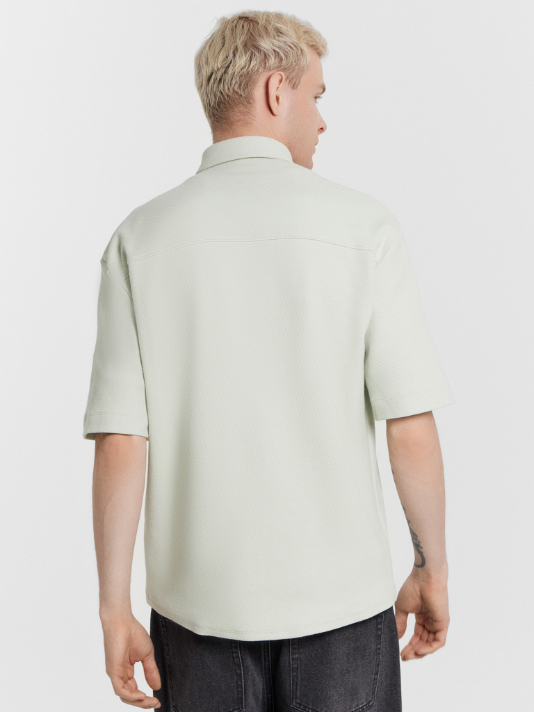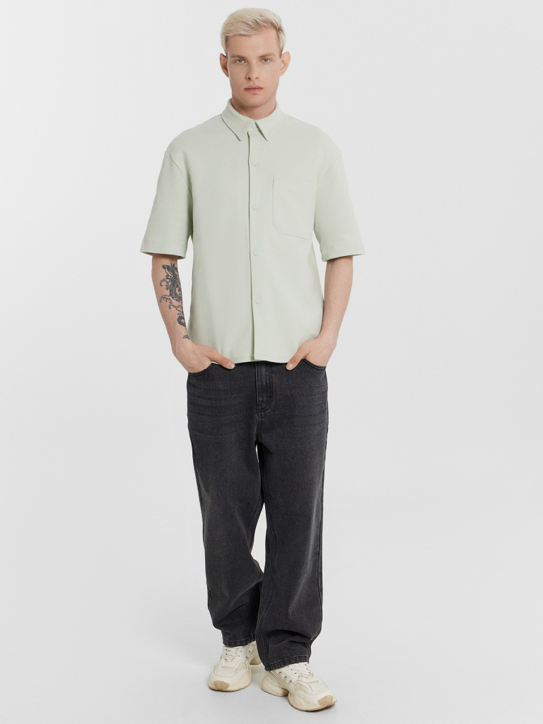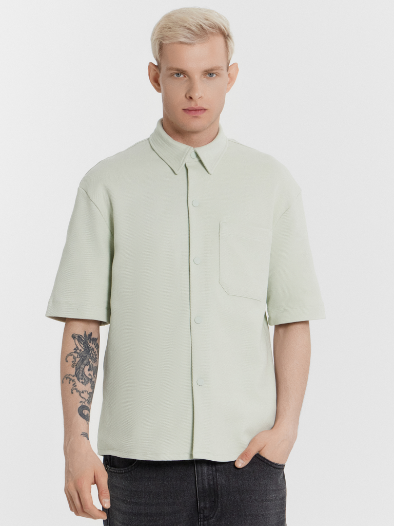 Эта мужская рубашка с коротким рукавом — стильный и универсальный вариант для повседневных и летних образов. Свободный силуэт обеспечивает комфортную посадку, а спущенная линия плеча добавляет расслабленный и современный акцент. Круглый вырез горловины с классическим воротником придает модели элегантность, а центральная застежка на кнопки делает ее удобной в носке. Накладной карман спереди добавляет функциональность и стильный штрих. Короткие рукава и обработанные швы придают аккуратный вид, а трикотажный материал интерлок обеспечивает мягкость, прочность и приятные ощущения на коже. Эта рубашка легко сочетается с джинсами, брюками или шортами, позволяя создавать актуальные и комфортные образы!