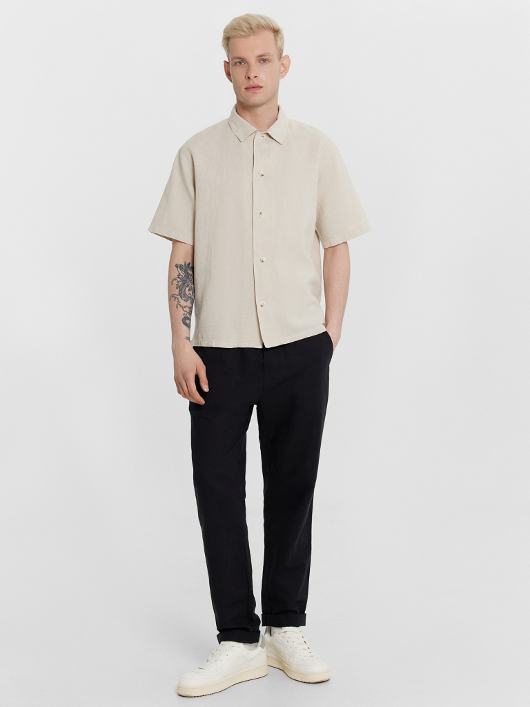 Мужская рубашка из льняной коллекции Mark Formelle — стильное и универсальное решение для тех, кто ценит комфорт и классический дизайн. Прямой, свободный силуэт обеспечивает удобную посадку и свободу движений, делая модель идеальным выбором для повседневной носки и непринужденных образов. Короткие рукава позволяют чувствовать себя комфортно в теплую погоду, а центральная застежка на петли и пуговицы добавляет практичности и элегантности в общий дизайн. Функциональный накладной карман на груди — удобный акцент, который делает рубашку еще более практичной. Спинка с кокеткой подчеркивает аккуратный крой, обеспечивая дополнительный комфорт и улучшенную посадку по фигуре. Разрезы по низу боковых швов придают модели легкость, а обработка нижних срезов и рукавов швом вподгибку делает изделие аккуратным и долговечным. Рубашка выполнена из натуральных материалов — сочетание льна и хлопка дарит приятные тактильные ощущения, обеспечивает отличную воздухопроницаемость и комфорт в течение всего дня. Идеальный вариант для тех, кто ищет сочетание практичности, стиля и качества в мужском гардеробе!