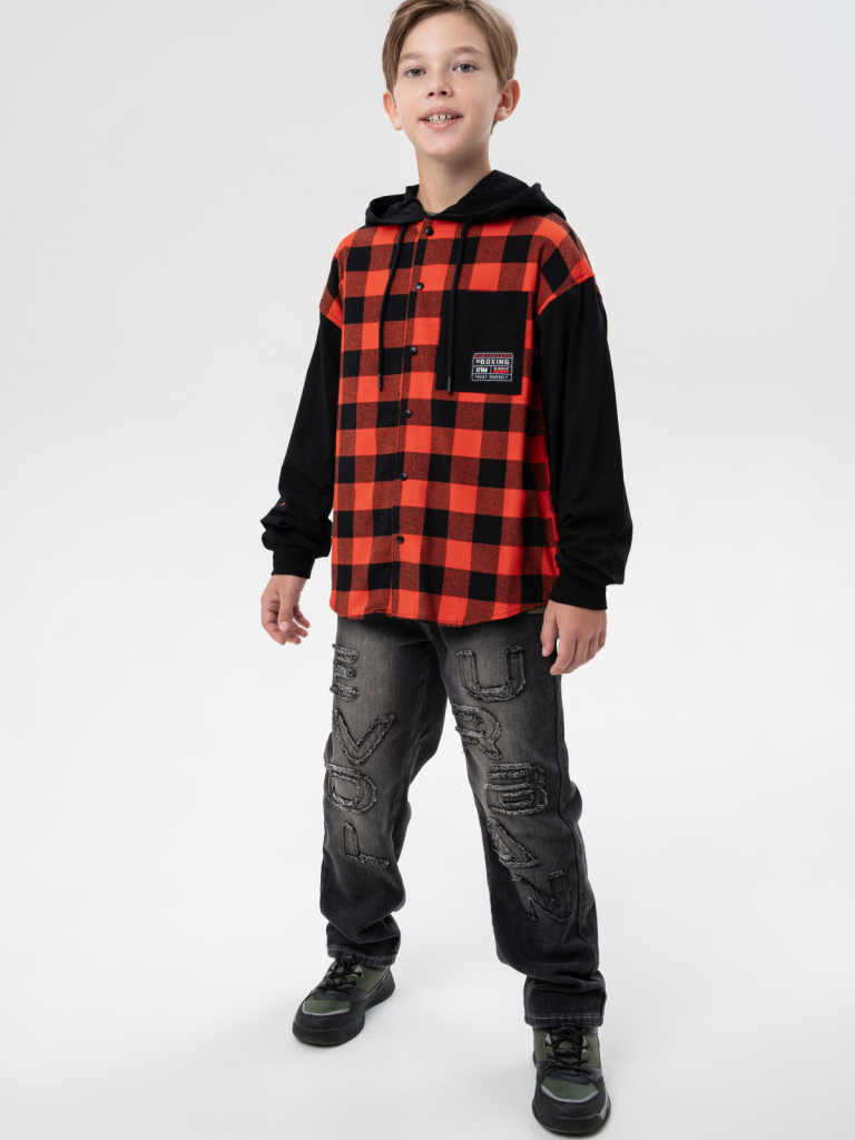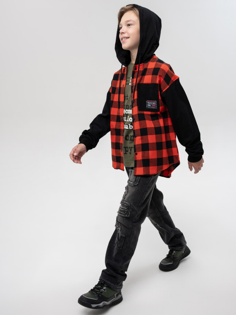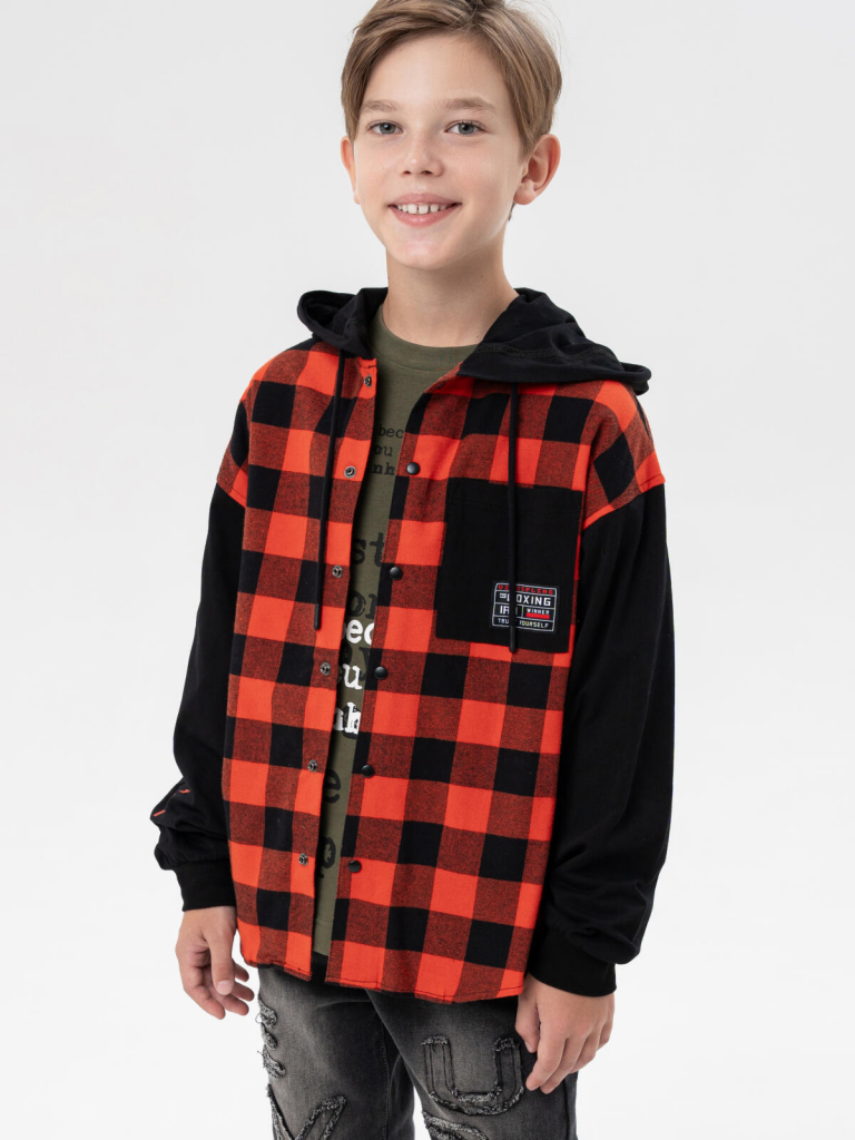 Фланелевая рубашка в клетку для мальчика подростка от PlayToday — стильная и практичная вещь, которая станет базой в гардеробе школьника. Натуральная фланель из 100% хлопка дарит мягкость, тепло и комфорт в носке, а капюшон добавляет современный спортивный акцент.Преимущества модели:+ 100% хлопок — натуральная ткань, дышащая и безопасная для кожи+ мягкая фланель — приятна к телу и отлично согревает в прохладную погоду+ удобная застежка на кнопки — легко надевать и снимать+ накладной карман и стильные принты — современный дизайн+ капюшон — защита от ветра и дополнительный комфорт+ регулировка капюшона шнуркомКогда и как носить:Эта рубашка идеально подойдет для школы, прогулок, встреч с друзьями и повседневных образов. Ее можно носить как самостоятельный элемент с джинсами или брюками, а также использовать как легкую верхнюю одежду поверх футболки.Советы по стилю:Сочетайте рубашку с джинсами и кедами от PlayToday для создания современного подросткового образа или надевайте поверх базовой футболки для многослойного casual-лука.Размеры: 128-176 для мальчиков подростков и школьников от 8 до 17 летМодная и удобная фланелевая рубашка в клетку с капюшоном — стильное решение для подростков от PlayToday!