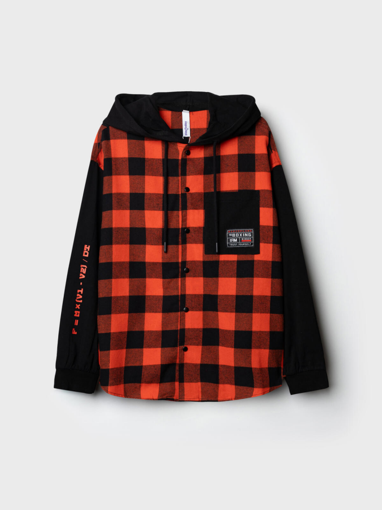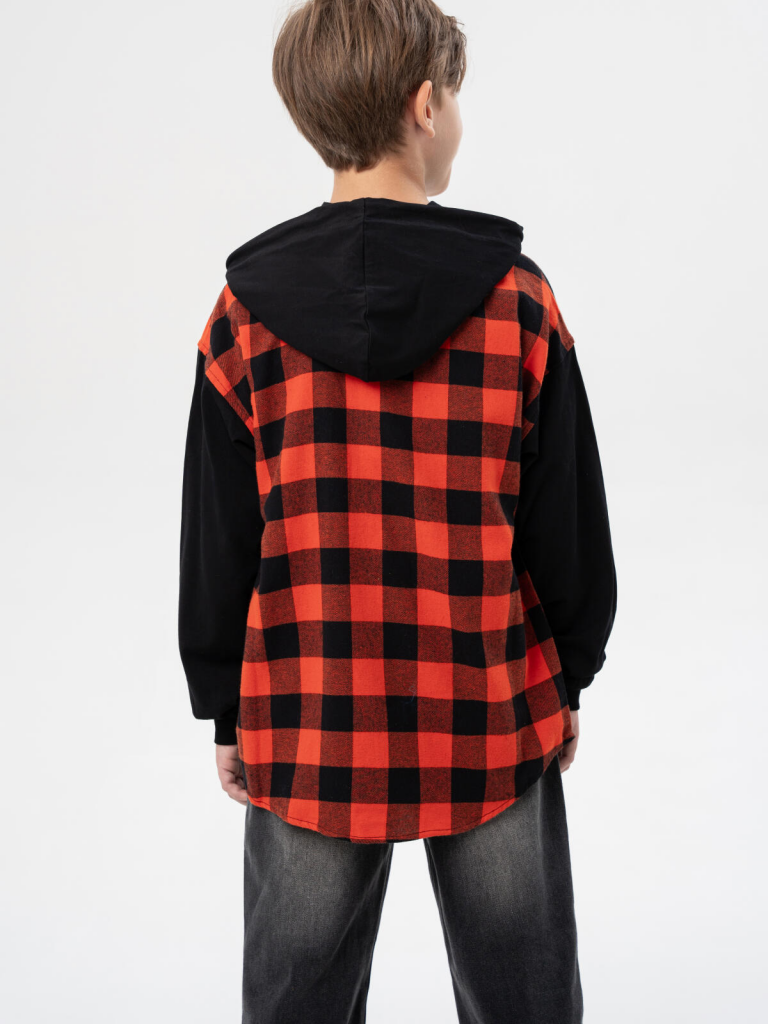 Рубашка текстильная с рукавами и капюшоном из трикотажа для мальчиков черный,красный