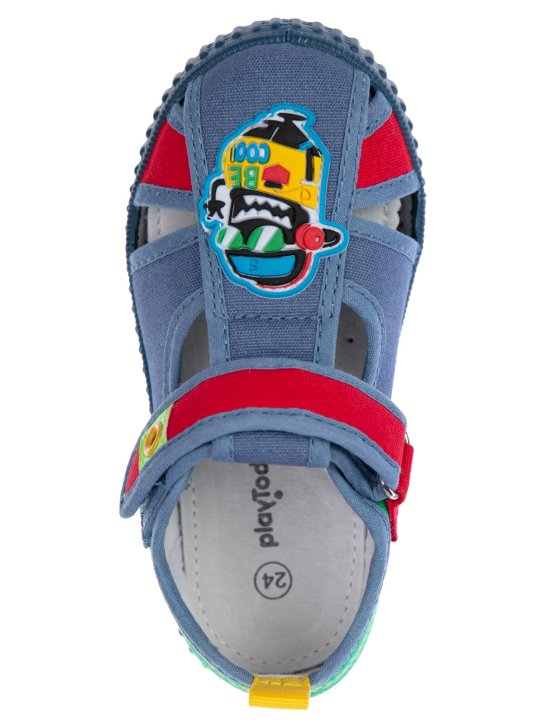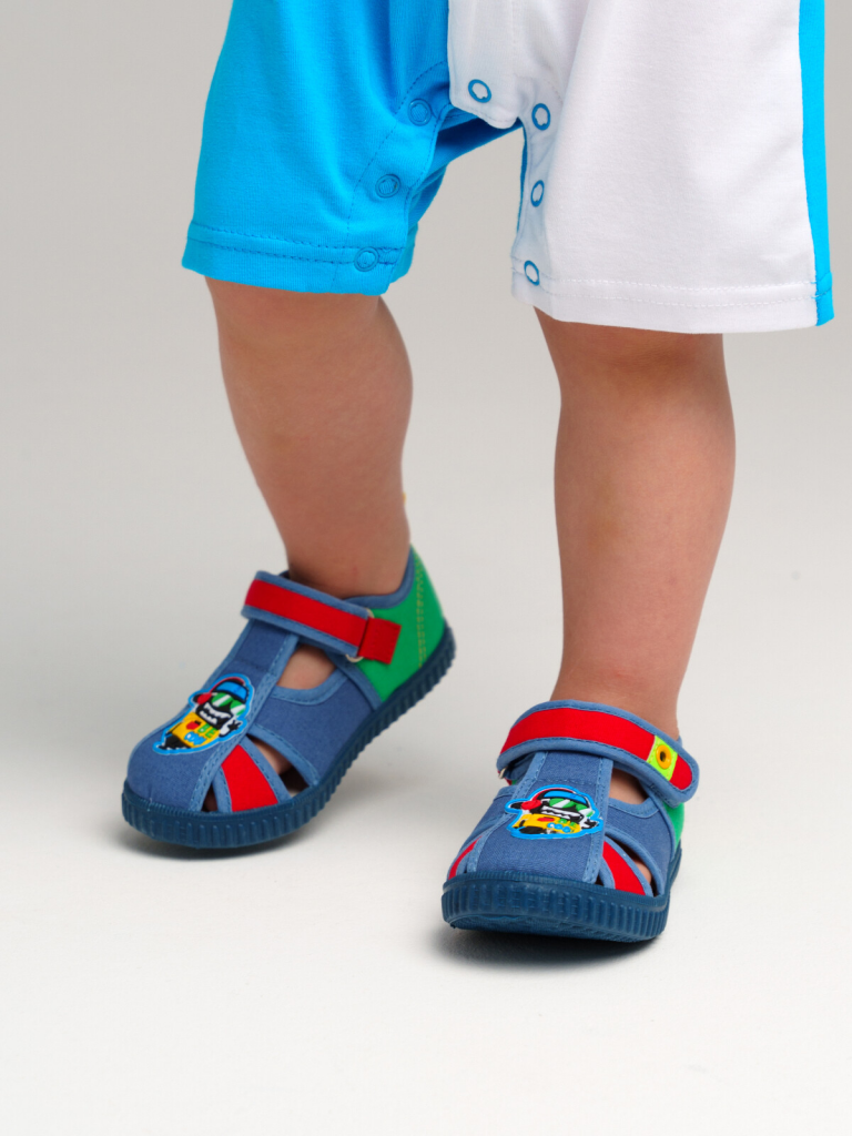 Сандалии детские для мальчика. Сандалии из дышащего текстиля. Ремень с липучкой позволяет легко обувать сандалии. Подкладка выполнена из 100% хлопка. Стелька выполнена из натуральной кожи и имеет анатомический элемент для поддержания свода стопы. Подошва из ПВХ легкая и гибкая.
