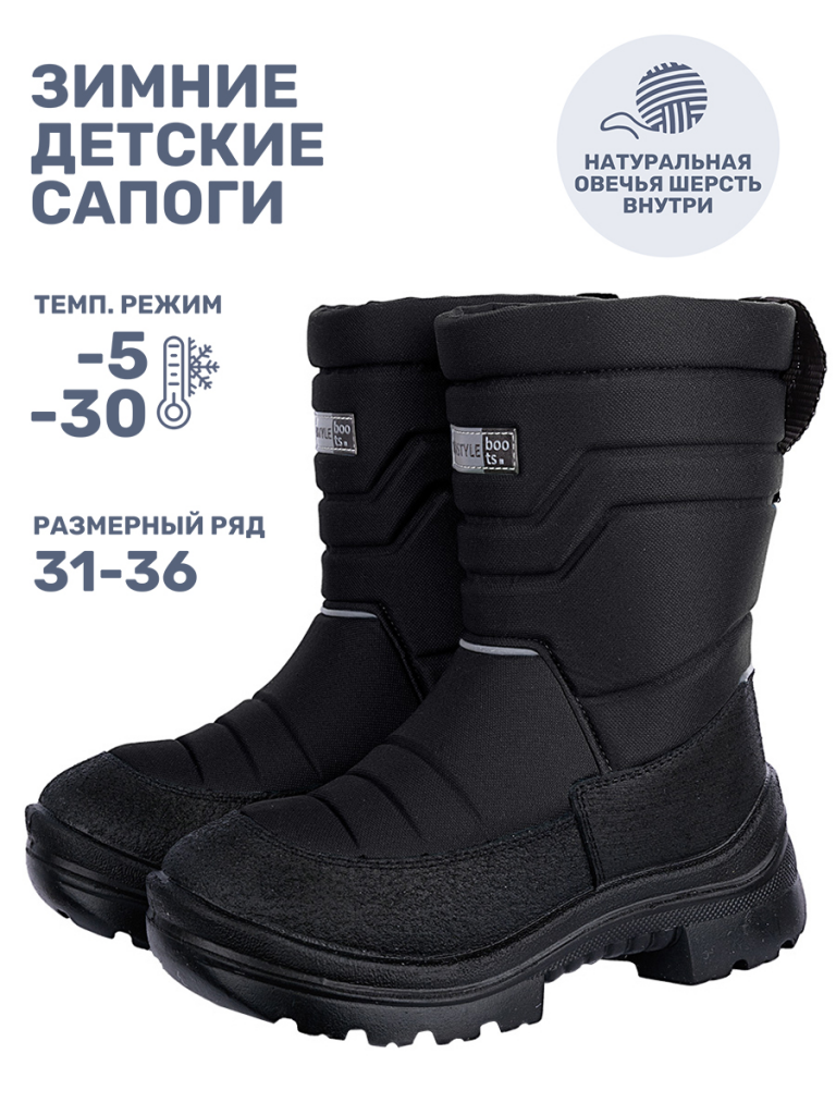 Преимущества ПУ подошвы: легкая, морозоустойчивая, гибкая и прочная. Материал верха — ветронепродуваемый текстиль с грязе- водоотталкивающей пропиткой. Прочный дышащий материал обеспечивает климат контроль и комфорт по время использования.