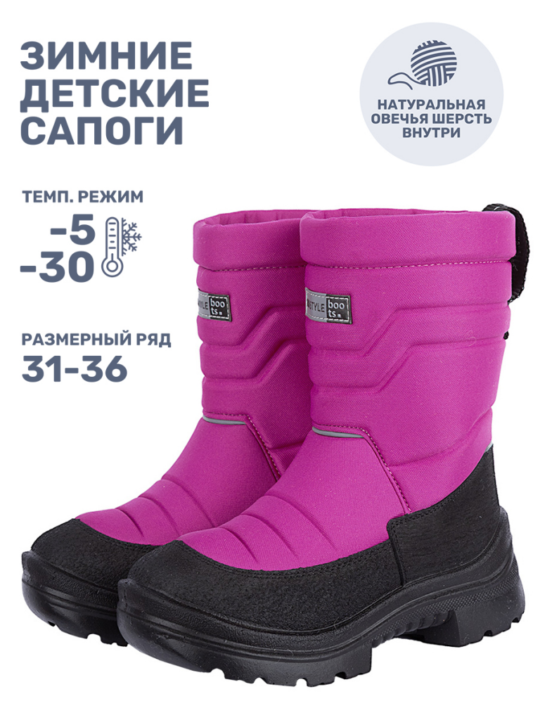 Преимущества ПУ подошвы: легкая, морозоустойчивая, гибкая и прочная. Материал верха — ветронепродуваемый текстиль с грязе- водоотталкивающей пропиткой. Прочный дышащий материал обеспечивает климат контроль и комфорт по время использования.