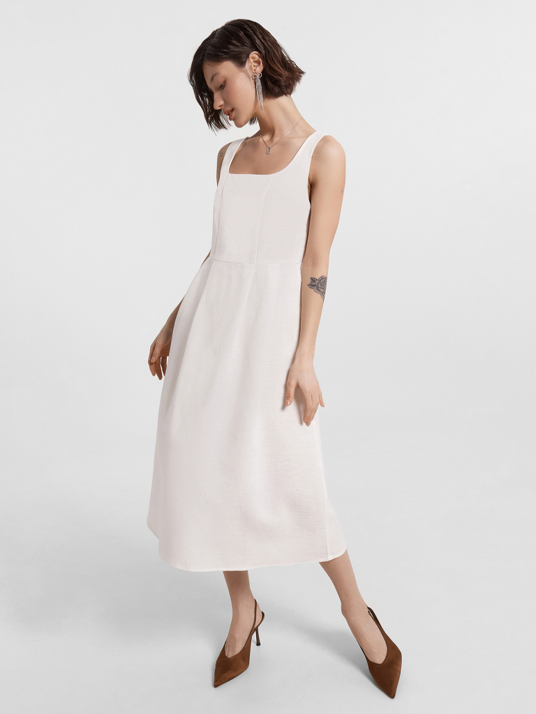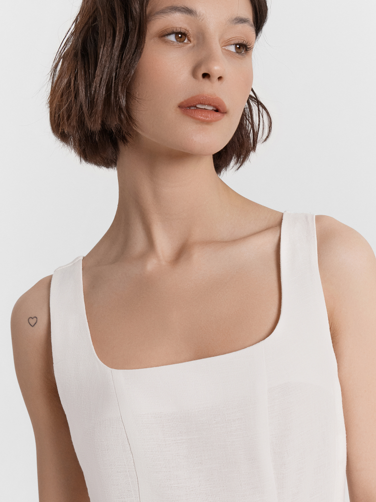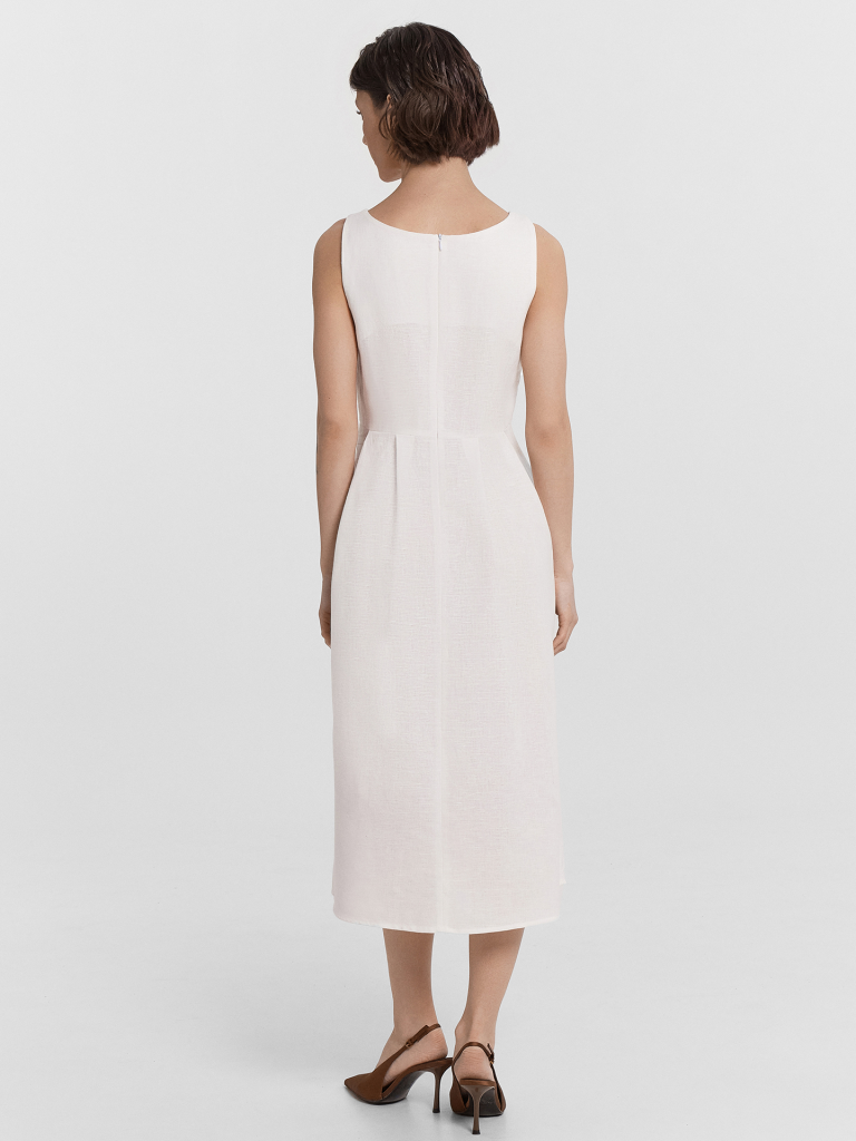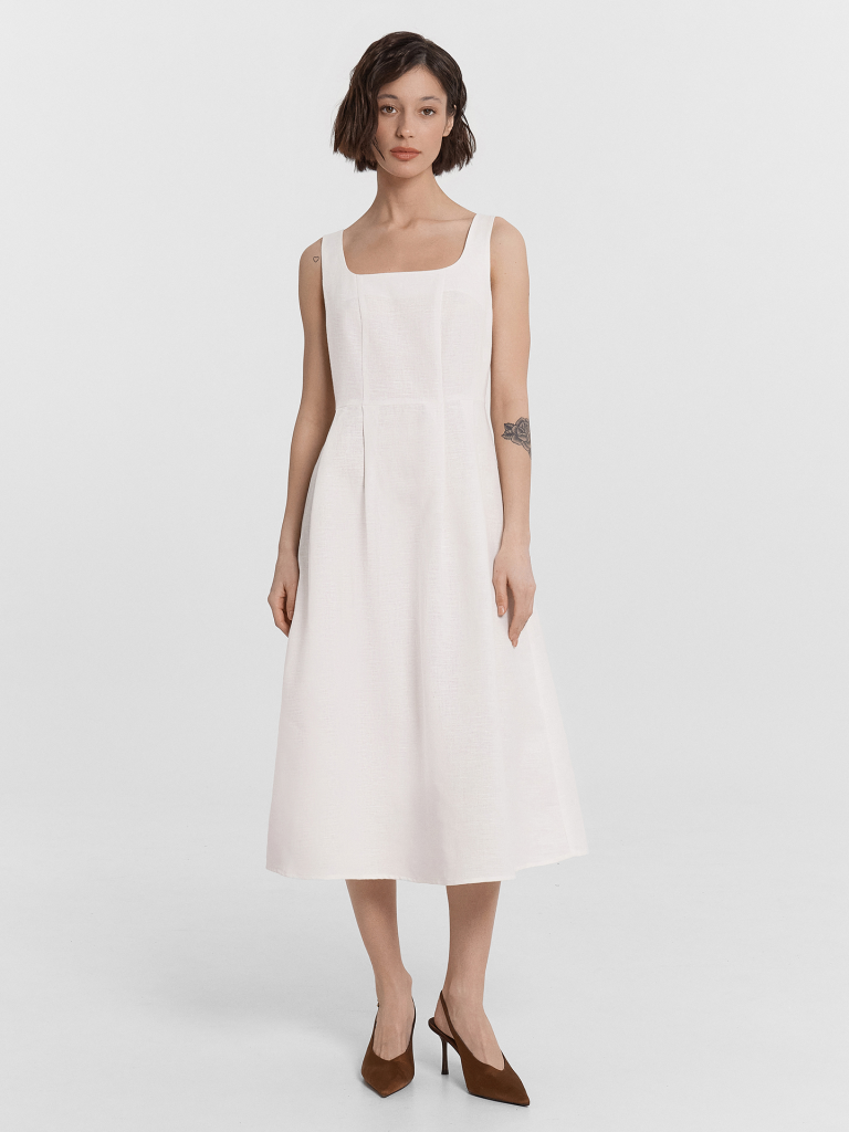 Лаконичный сарафан миди — воплощение элегантности и комфорта! Выполненный из премиального льна и хлопка, он приятно прилегает к телу, позволяя коже дышать и создавая ощущение легкости даже в жаркую погоду. Изящный слегка прилегающий силуэт акцентирует внимание на талии, подчеркивая фигуру, а вырез горловины каре и рельефные швы по передней части придают сарафану особую утонченность. Этот фасон делает модель универсальной — она прекрасно подойдет как для прогулок, так и для вечерних мероприятий. Застежка на потайную молнию на спинке обеспечивает удобство при надевании и снимается легко и незаметно, сохраняя минималистичный и элегантный дизайн. Такой сарафан — идеальный выбор для тех, кто ценит сочетание высокого качества, женственного силуэта и комфортных натуральных тканей. Добавьте его в свой гардероб и наслаждайтесь безупречным стилем в каждом образе!