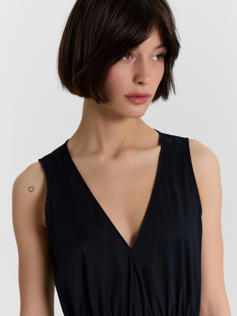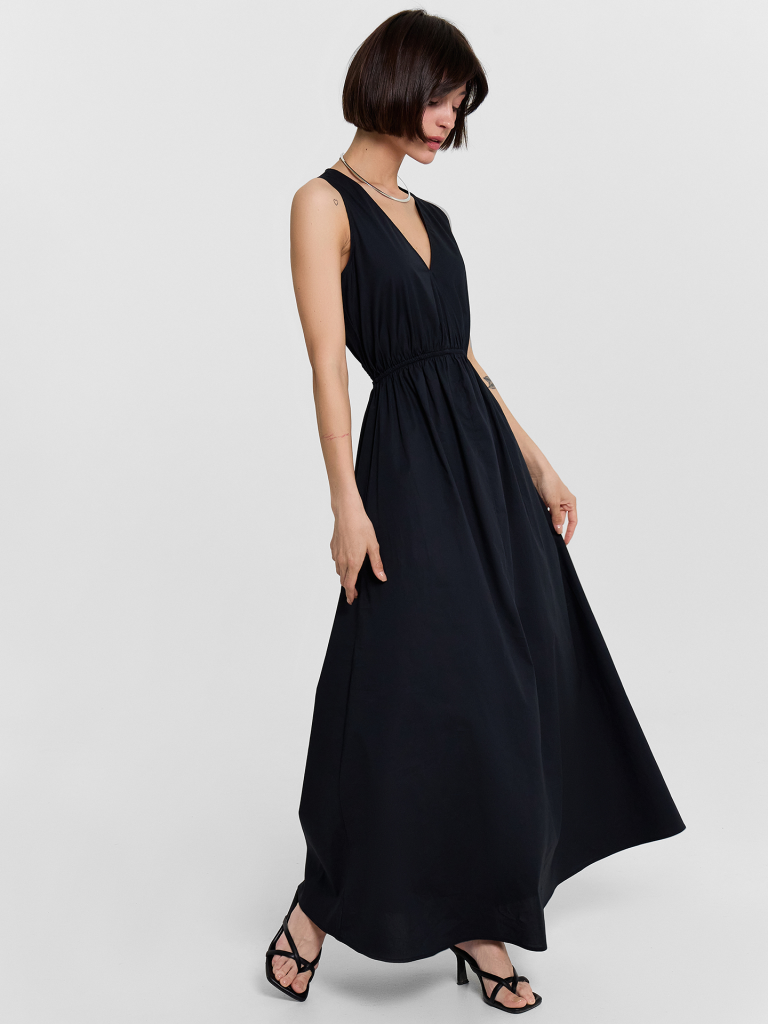 Стильный женский сарафан полуприлегающего силуэта – элегантный и универсальный наряд для теплых летних дней. Модель из 100% натурального хлопка, воплощает в себе идеальное сочетание комфорта, стиля и практичности. Этот удивительно легкий, дышащий материал обеспечит вам ощущение невесомости и приятную прохладу даже в самую жаркую погоду. Женственный V-образный вырез подчеркивает изящество линий декольте, а отрезная линия талии с внутренней эластичной тесьмой создает аккуратную посадку, подчеркивая достоинства фигуры. Фигурный вырез на спинке сделает вас элегантнее. Длина миди делает его универсальным. Благодаря лаконичному дизайну, этот женский сарафан легко комбинируется с различными аксессуарами, создавая множество ярких, запоминающихся образов. Широкий размерный ряд. Рекомендуем!