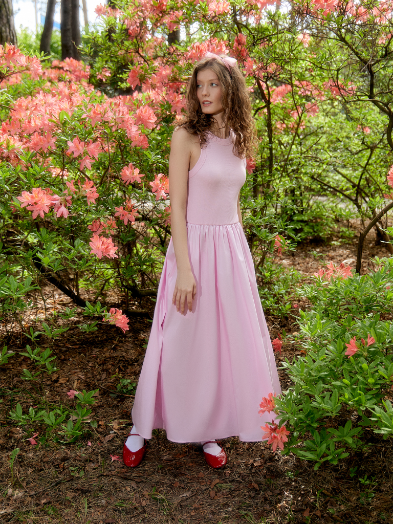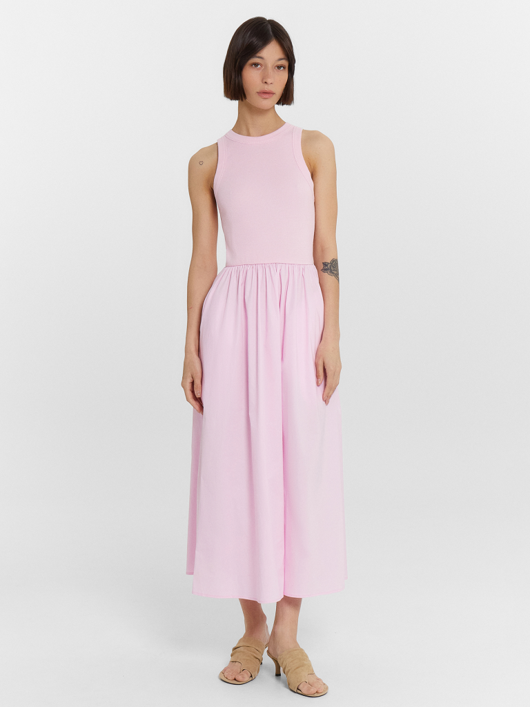 Сарафан женский прилегающего силуэта, отрезной по талии, верхняя чать из рибаны.