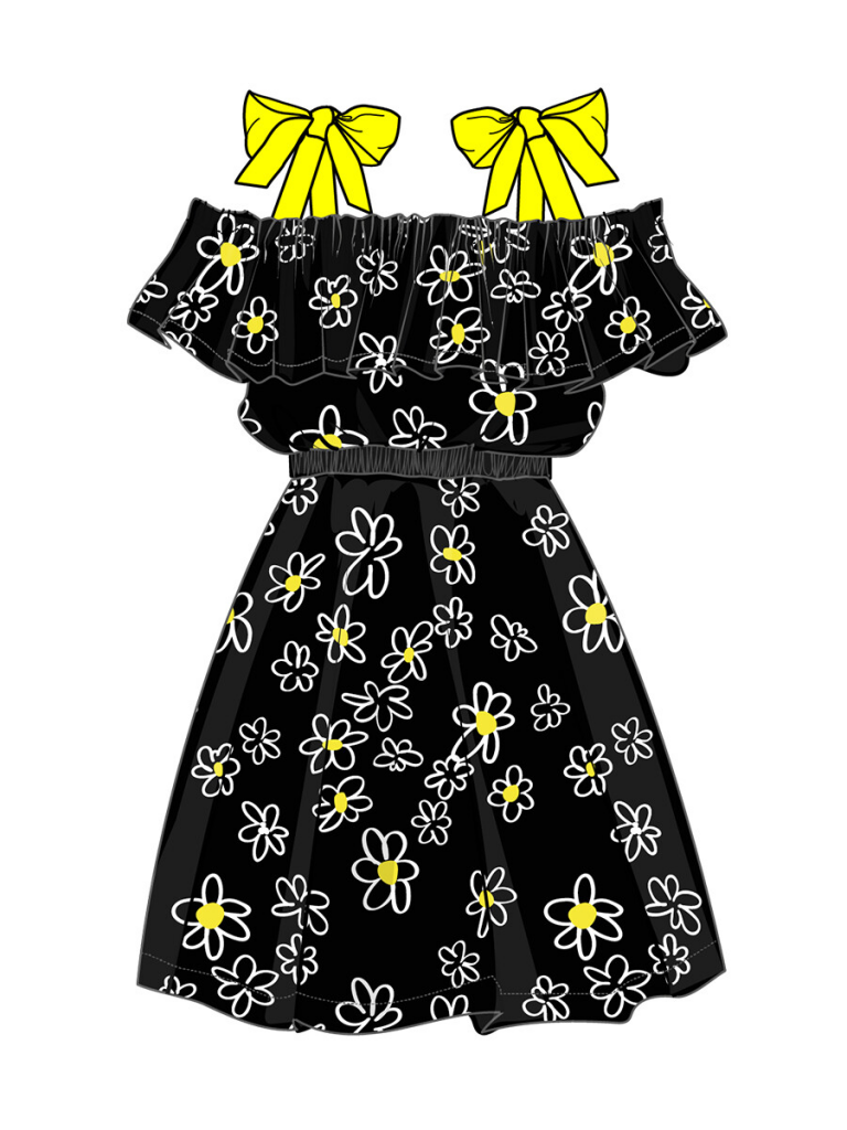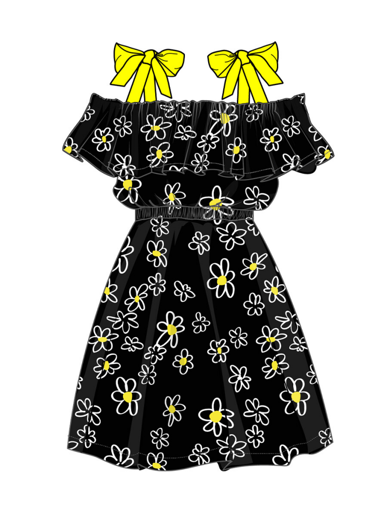 Сарафан текстильный для девочек черный,белый,жёлтый