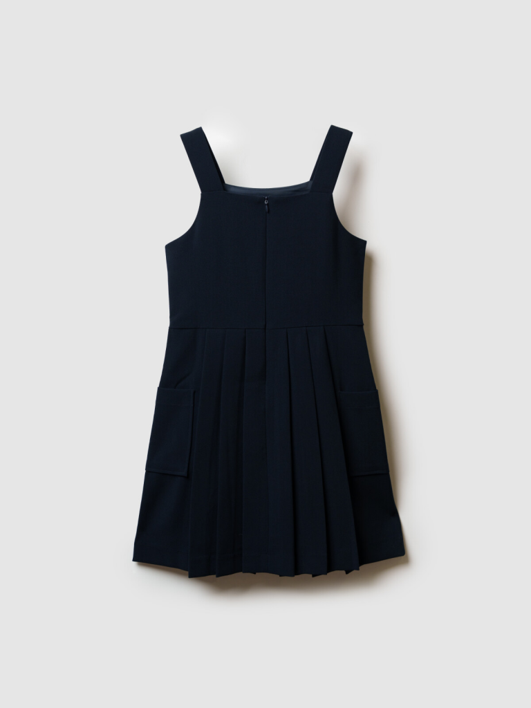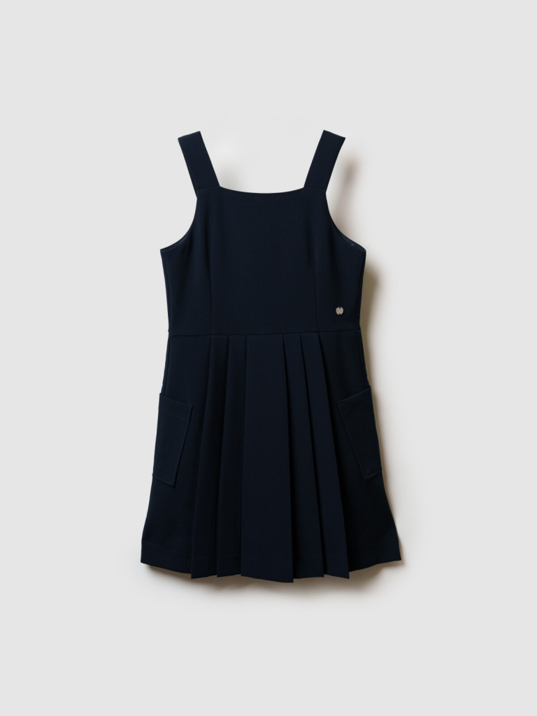 Темно-синее школьное текстильное платье сарафан для девочки-подросткаСтильное и удобное платье для школы и торжественных мероприятий!Ключевые особенности:+ Посадка Comfort — свободный крой не сковывает движений+ Ткань non-iron — не требует глажки, сохраняет опрятный вид весь день+ Застежка на молнию — удобная застежка и стильный дизайнПочему стоит выбрать?+ Идеально для школы — соответствует дресс-коду+ Удобно в школу и на праздники+ Подходит как нарядное платье на 1 сентября+ Детская модель с учетом особенностей фигуры подростка