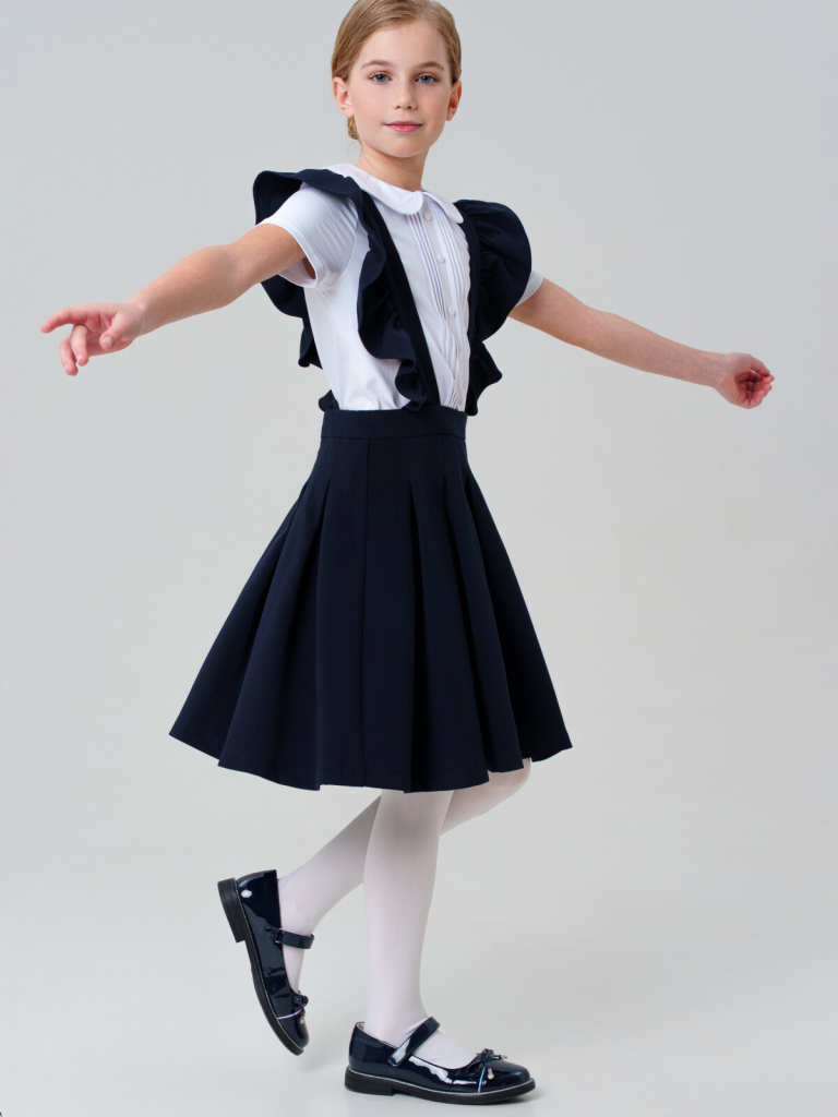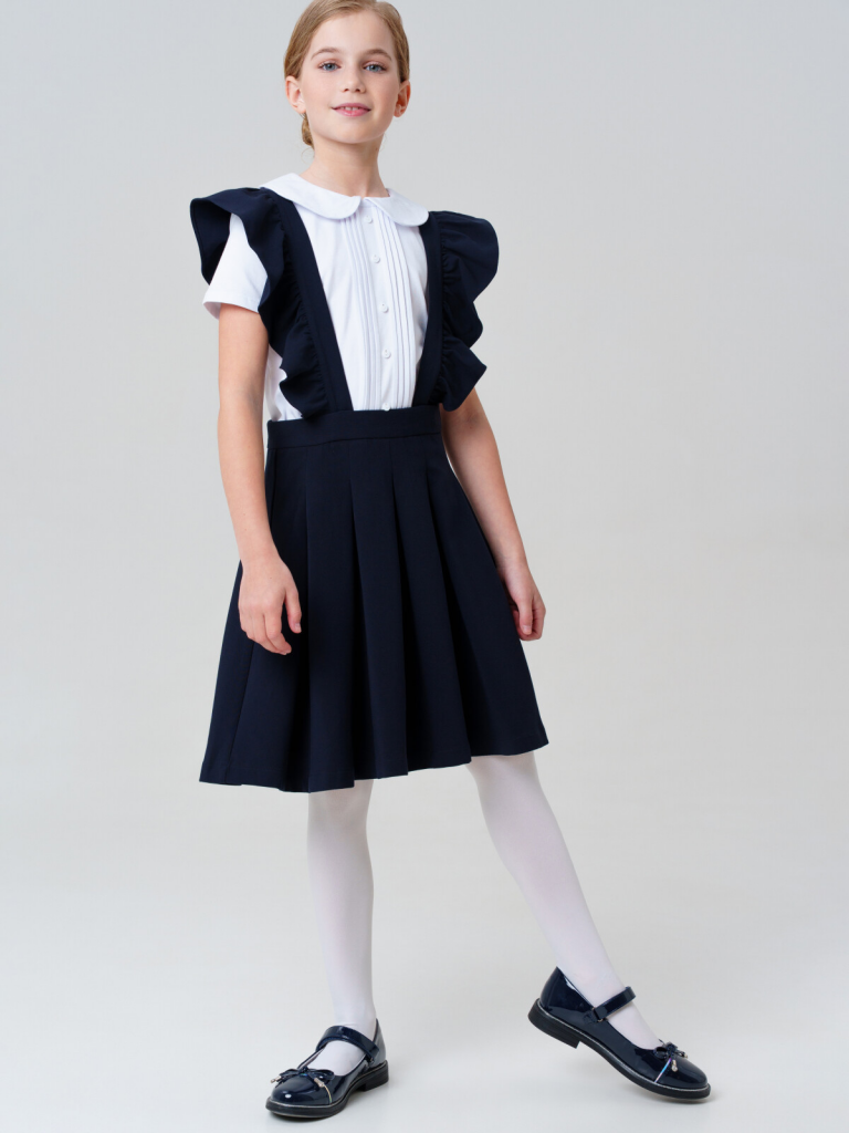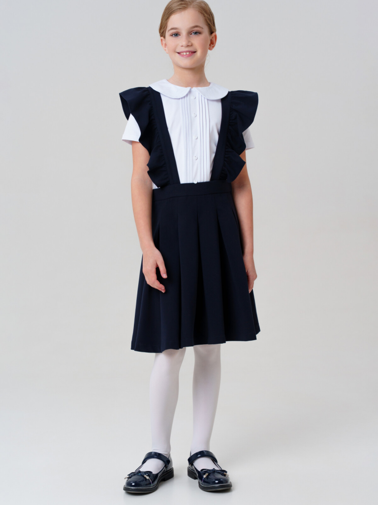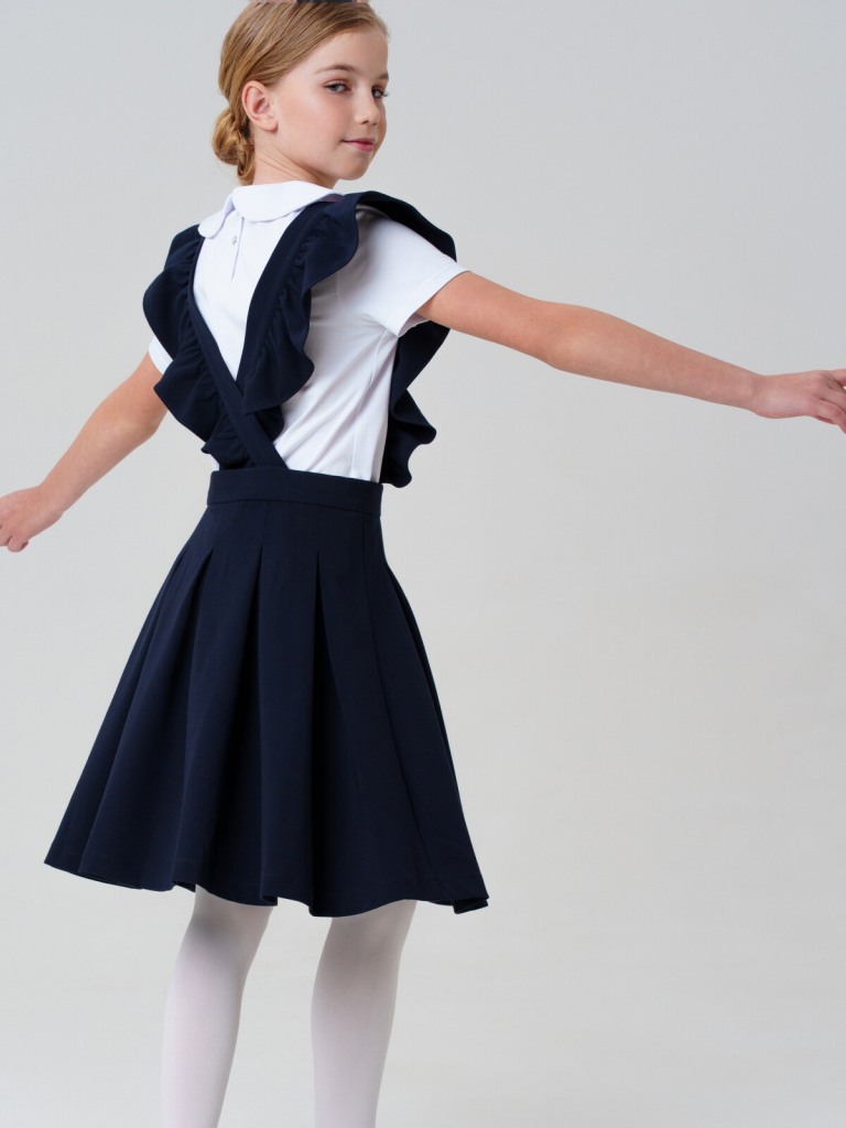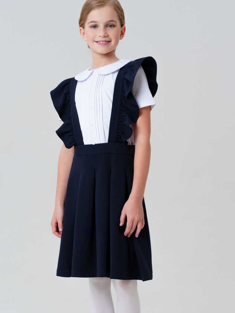 Темно-синее школьное текстильное платье сарафан для девочки-подросткаСтильное и удобное платье для школы и торжественных мероприятий!Ключевые особенности:+ Посадка Regular — прямой крой не сковывает движений+ Ткань non-iron — не требует глажки, сохраняет опрятный вид весь день+ Элегантный вырез — создает аккуратный школьный образ+ Застежка на пуговицы — удобная застежка и стильный дизайн+ Бретели сарафана крепятся на пуговицы и снимаются при желании.Почему стоит выбрать?+ Идеально для школы — соответствует дресс-коду+ Удобно в школу и на праздники+ Подходит как нарядное платье на 1 сентября+ Детская модель с учетом особенностей фигуры подростка