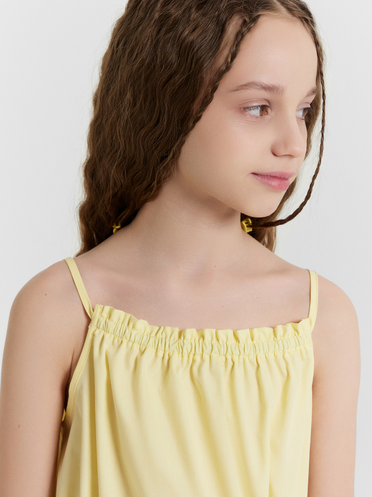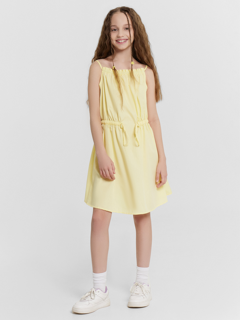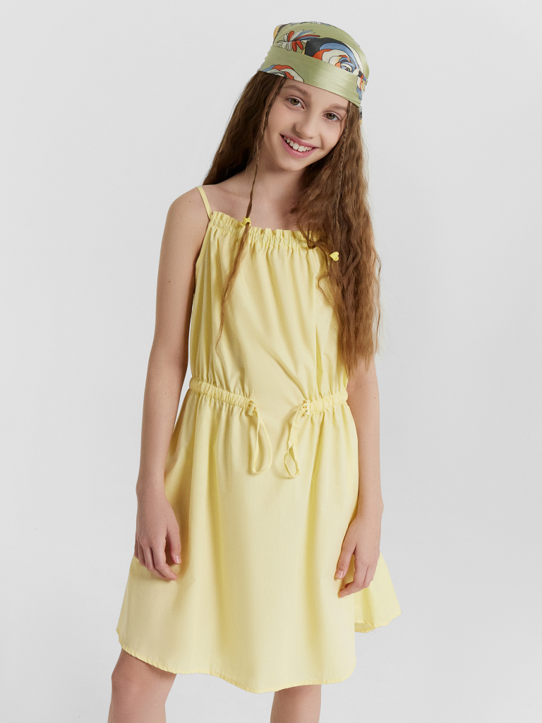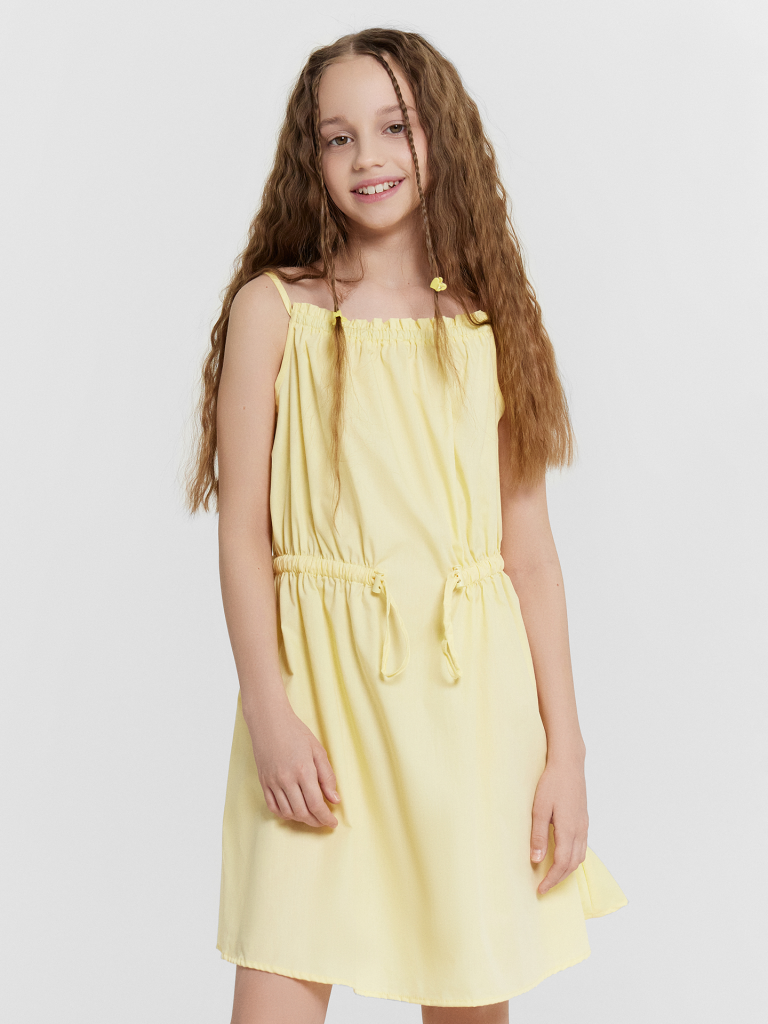 Этот стильный сарафан для девочек — прекрасный выбор для летнего гардероба! Модель на тонких бретелях создает легкий и элегантный образ, идеально подходящий для теплых дней. Эластичная сборка в области груди и талии не только добавляет изящности, но и позволяет регулировать приталенность, обеспечивая комфортную посадку и подчеркивая силуэт. Изделие выполнено из комбинации натурального хлопка и полиэстера. Такое сочетание делает сарафан мягким, приятным к телу и при этом долговечным, устойчивым к износу. Материал легкий и позволяет коже дышать, что особенно важно в жаркую погоду. Сарафан идеально подойдет для прогулок, семейных мероприятий или повседневного ношения. Он прекрасно сочетается с сандалиями, балетками или легкими кедами, добавляя нежности и свежести в каждый образ!