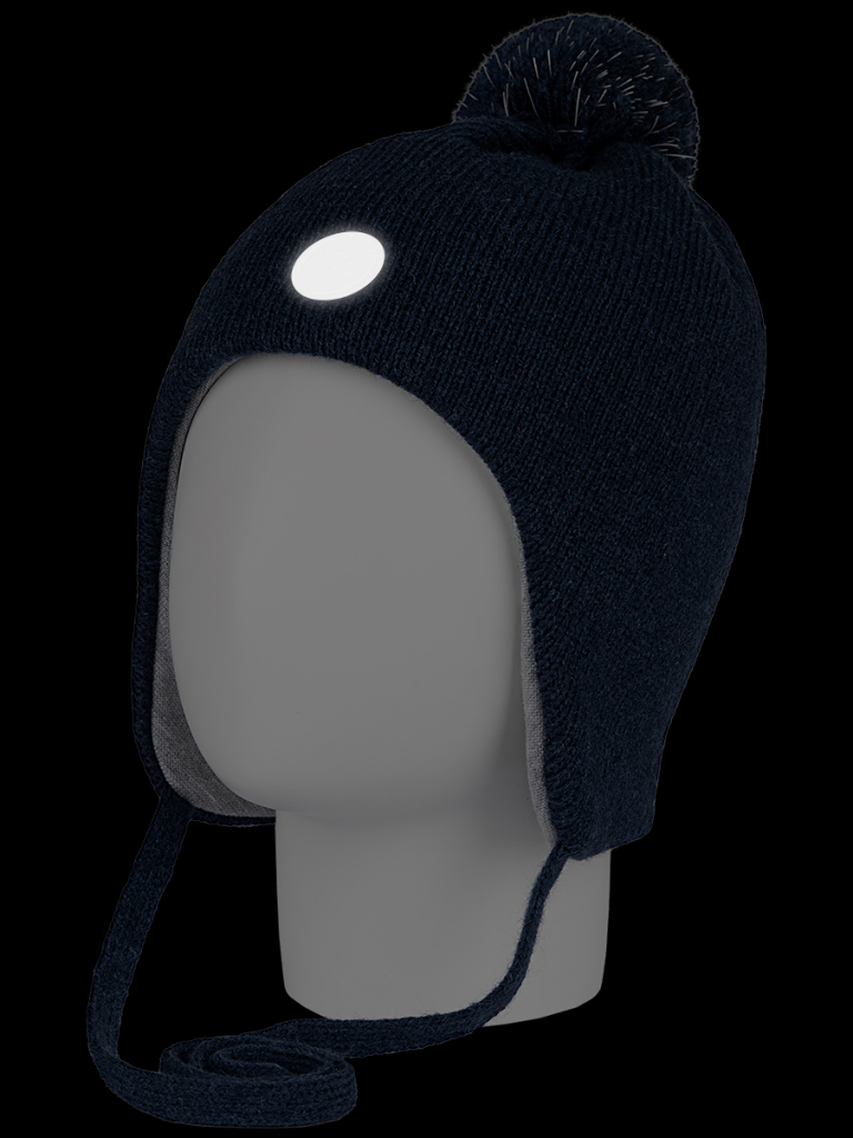 Помпон оснащен светоотражающими нитями, которые светятся в темноте. Наличие светоотражающих элементов на изделии обеспечит безопасность ребенка в темное время суток.