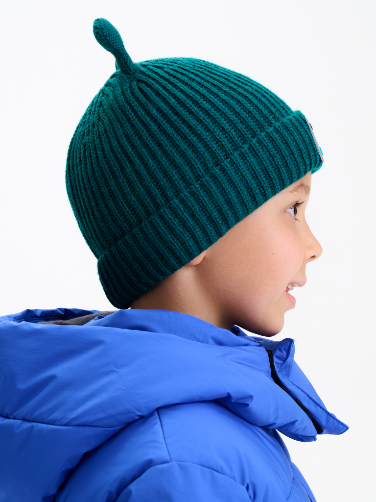 Стильная шапка с отворотом на мягком флисовом подкладе — идеальный выбор для холодных дней. Вязка английской резинкой обеспечивает плотное и комфортное облегание, а стоячие рожки в виде улитки добавляют оригинальности и игривого характера. Шапка плотно садится на голову и полностью закрывает уши, обеспечивая надёжное тепло. По центру отворота — аккуратная силиконовая нашивка, которая подчёркивает современный стиль этой модели.