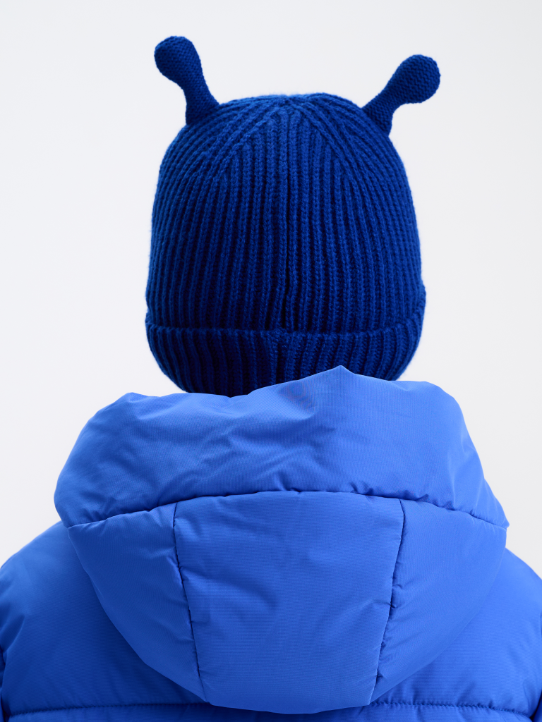Стильная шапка с отворотом на мягком флисовом подкладе — идеальный выбор для холодных дней. Вязка английской резинкой обеспечивает плотное и комфортное облегание, а стоячие рожки в виде улитки добавляют оригинальности и игривого характера. Шапка плотно садится на голову и полностью закрывает уши, обеспечивая надёжное тепло. По центру отворота — аккуратная силиконовая нашивка, которая подчёркивает современный стиль этой модели.