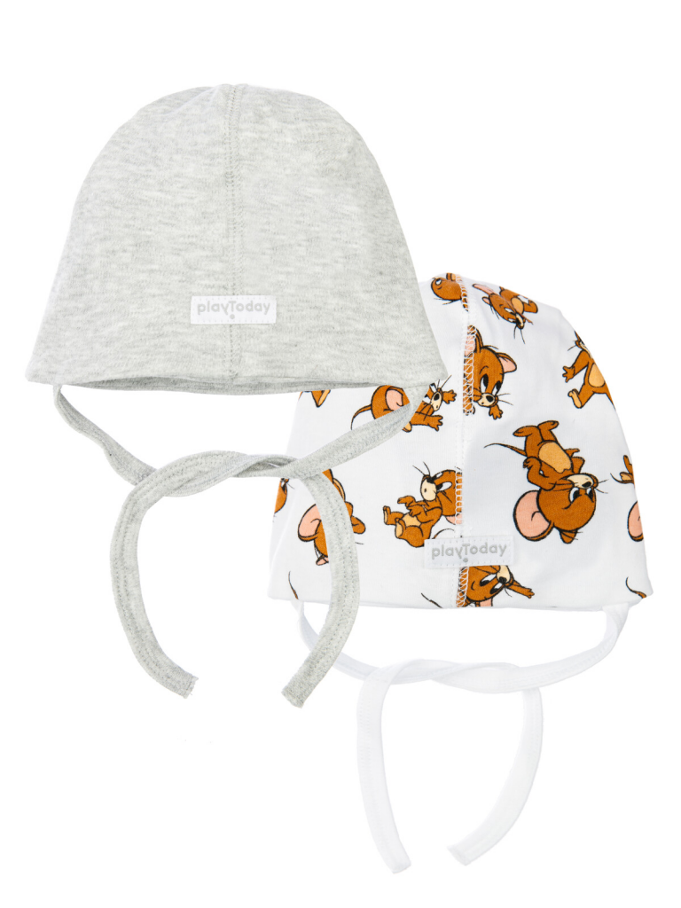 Шапка с завязками из натурального хлопкового двойного трикотажа. 100% хлопок. 2 шт. в комплекте