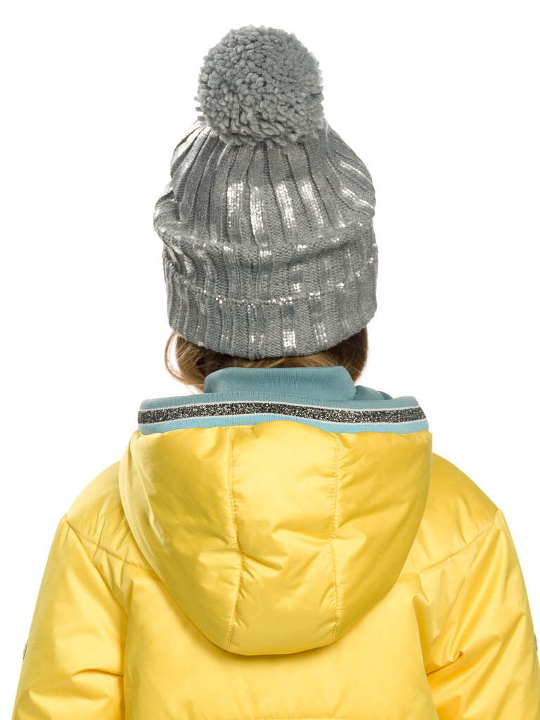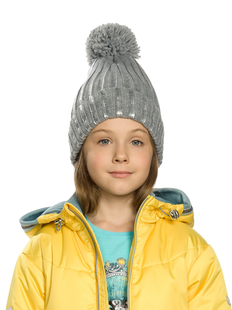 Шапка для девочек. Шапка двойной вязки с отворотом: вид вязки риб 3*3. Декор: серебряное напыление и большой помпон, собранный из толстой пряжи.
