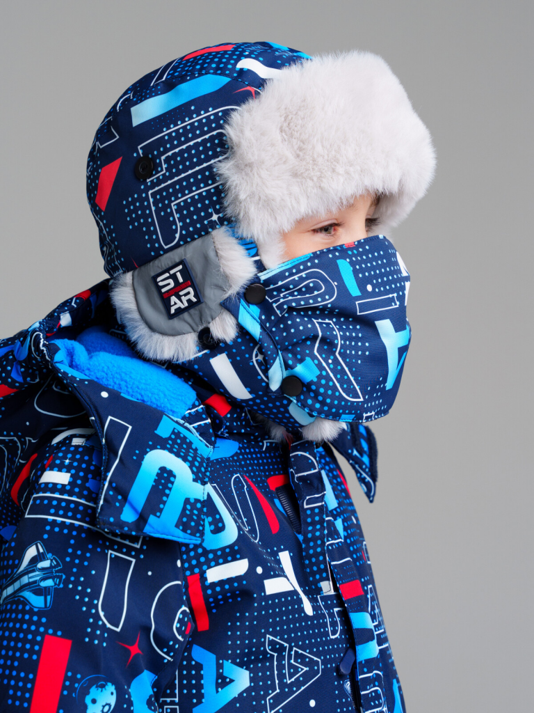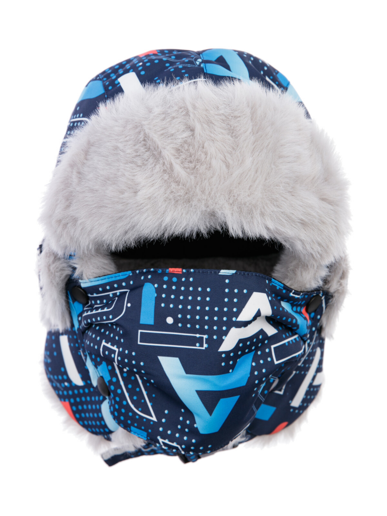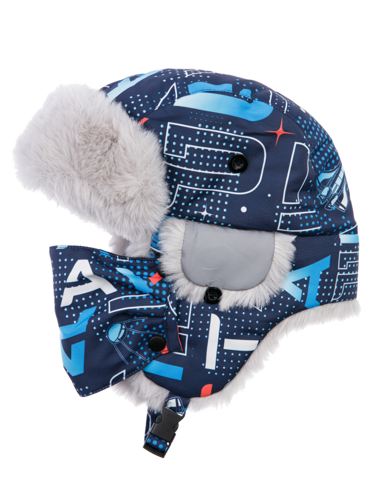 Шапка текстильная. Материал верха с водоотталкивающей пропиткой. Подкладка в области ушей из искусственного меха, в области головы - таффета. Утепление синтепоном - защита ушей от ветра и холода. Удобные застежки. Съемная деталь, прикрывающая лицо от ветра и холода, на кнопках.