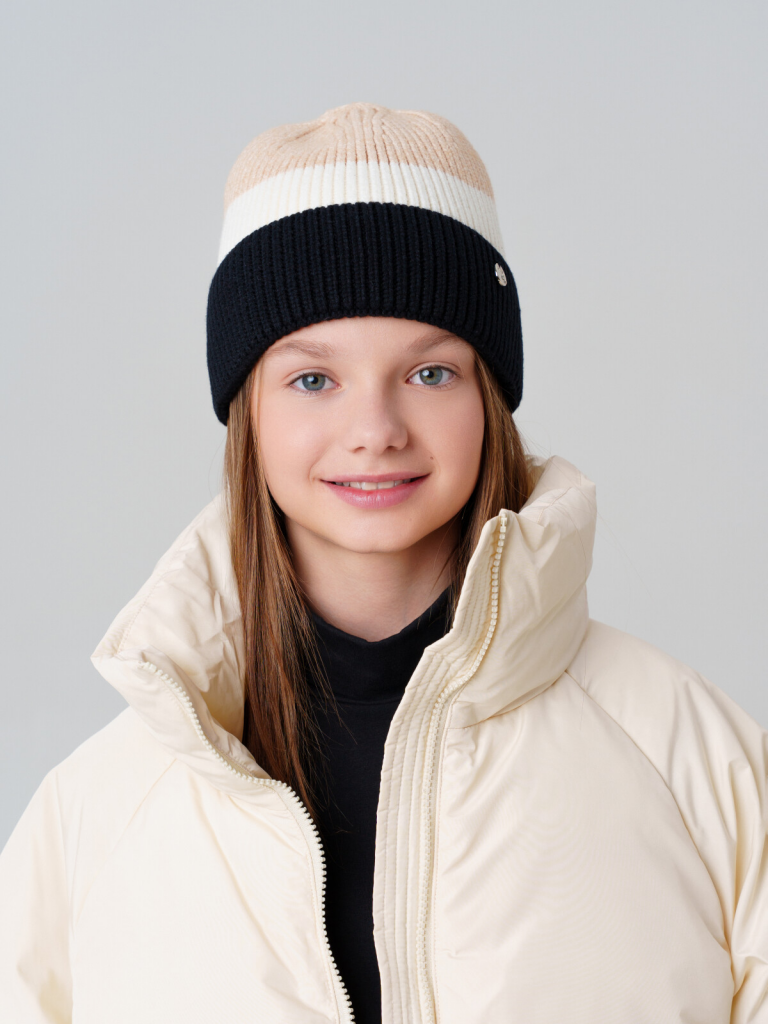 > Шапка трикотажная для девочек бежевый,белый,черный