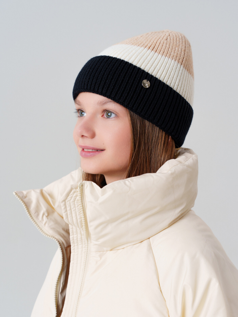 Шапка трикотажная для девочек бежевый,белый,черный