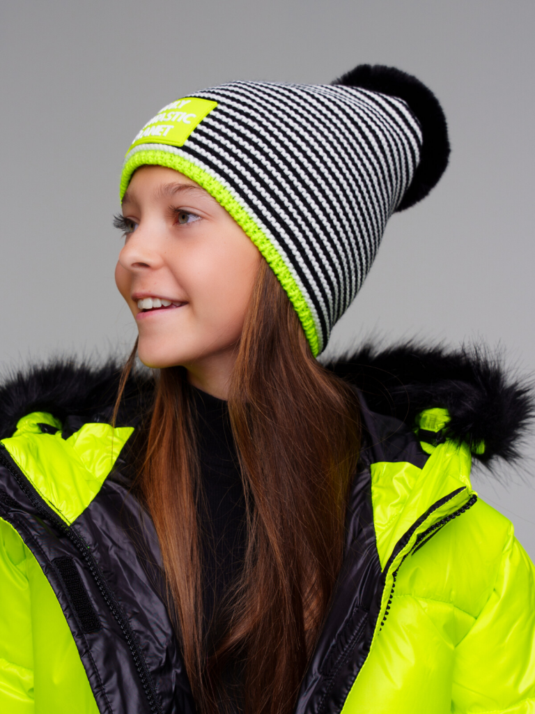 Шапка трикотажная для девочек черный,белый,светло-зеленый